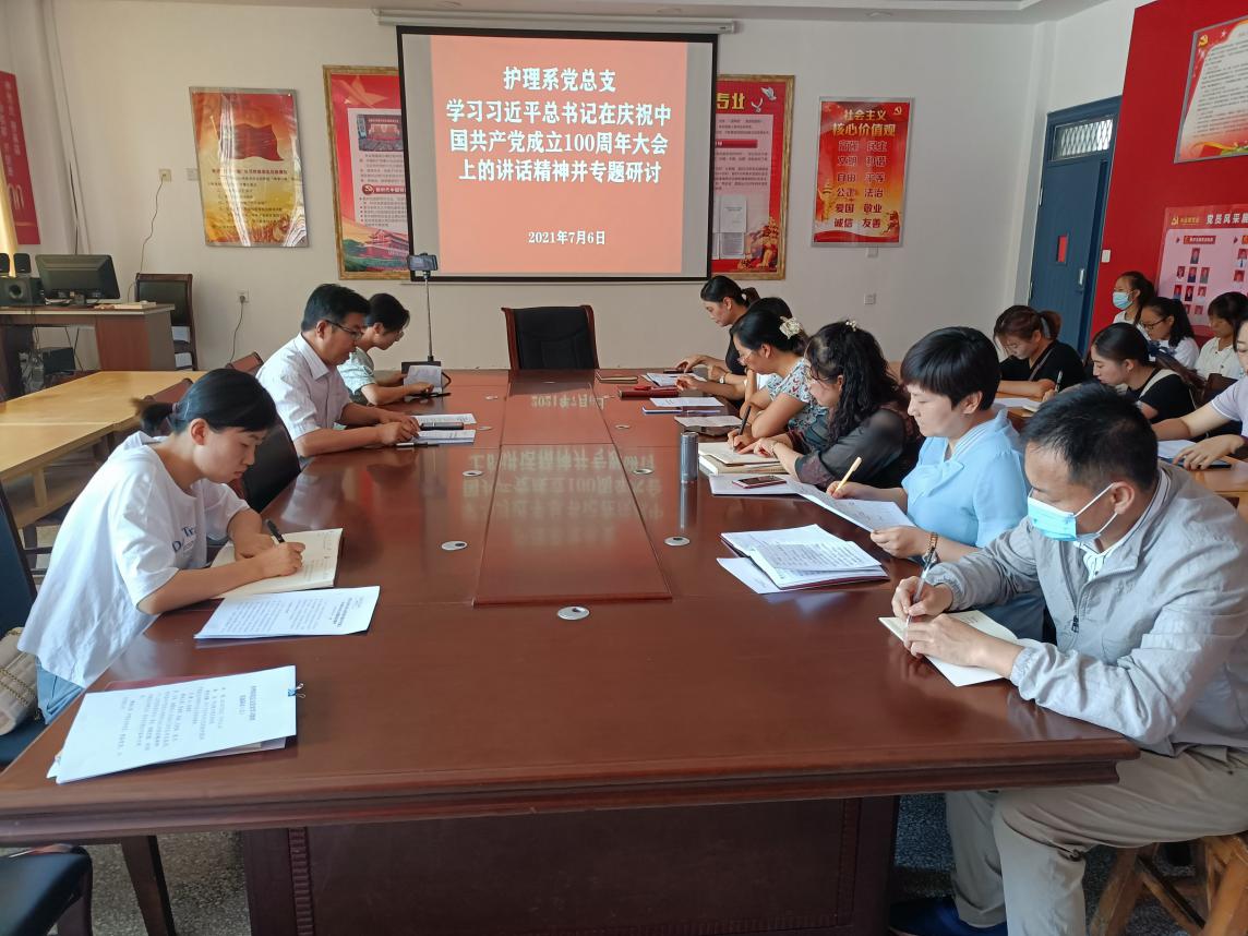 護(hù)理系黨總支專題學(xué)習(xí)領(lǐng)會習(xí)近平總書記在慶祝中國共產(chǎn)黨成立100周年大會上的重要講話精神并研討交流