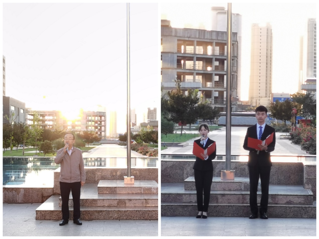 升旗儀式開始,全體肅立,在師生的注視中,國旗護衛(wèi)隊員,迎著朝陽,邁著鏗鏘有力的步伐來到國旗臺下,伴隨著莊嚴的《中華人民共和國國歌》,鮮艷的五星紅旗冉冉升起。升旗儀式結(jié)束后,2020級學(xué)生代表楊曉鵬、張鈺鈺進行了國旗下演講,他們呼吁同學(xué)們在求學(xué)路上,不斷探索、樂學(xué)善思、德技并修、求知上進、勤奮好學(xué),做一名洋溢青春活力、釋放青春激情、追逐青春夢想、健康向上的新時代大學(xué)生,發(fā)出“請黨放心、強國有我”的深情告白。