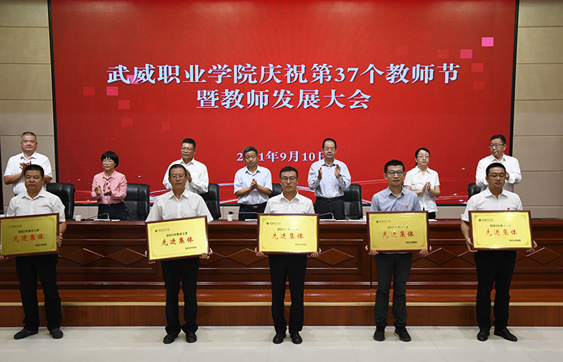 王永緒宣讀了省人社廳、省教育廳《關(guān)于表彰2021年甘肅省“園丁獎”先進(jìn)集體和先進(jìn)個人的決定》;田迎春宣讀了武威市委、市政府《關(guān)于表彰獎勵 2021 年全市教育工作先進(jìn)集體和先進(jìn)個人的決定》;何毅宣讀了《武威職業(yè)學(xué)院關(guān)于表揚(yáng)2021年教育工作先進(jìn)集體和先進(jìn)個人的決定》;陳曉煜宣讀了《武威職業(yè)學(xué)院關(guān)于評定(聘任)教學(xué)名師、教學(xué)能手、教學(xué)新秀、專業(yè)(學(xué)科)帶頭人的決定》,并向先進(jìn)集體和個人頒發(fā)了獎牌和證書。