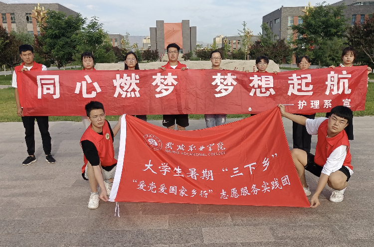 為認(rèn)真貫徹落實(shí)習(xí)近平總書記在慶祝中國(guó)共產(chǎn)黨成立100周年大會(huì)上的講話精神,不斷深化實(shí)踐育人,引領(lǐng)學(xué)生在社會(huì)實(shí)踐中受教育、長(zhǎng)才干、作貢獻(xiàn),培養(yǎng)學(xué)生家國(guó)情懷和實(shí)踐能力,著眼于青年了解認(rèn)知鄉(xiāng)村情況,踴躍參與鄉(xiāng)村振興戰(zhàn)略實(shí)施,同時(shí)加強(qiáng)對(duì)大學(xué)生黨史、新中國(guó)史教育,鼓勵(lì)大學(xué)生青年志愿者向社區(qū)報(bào)道,7月15-21日,由武威職業(yè)學(xué)院護(hù)理系一名指導(dǎo)老師與本專業(yè)九位青年志愿者組成的“愛(ài)國(guó)家鄉(xiāng)行”一行十人分別前往武威市涼州區(qū)雙城鎮(zhèn)南安社區(qū)和敬老院開展主題為“同心燃?jí)簟?mèng)想起航”的暑期“三下鄉(xiāng)”活動(dòng)。在炎炎夏日,志愿者的服務(wù)為社區(qū)居民和敬老院的老人帶去了一份愛(ài)心、一絲暖意。