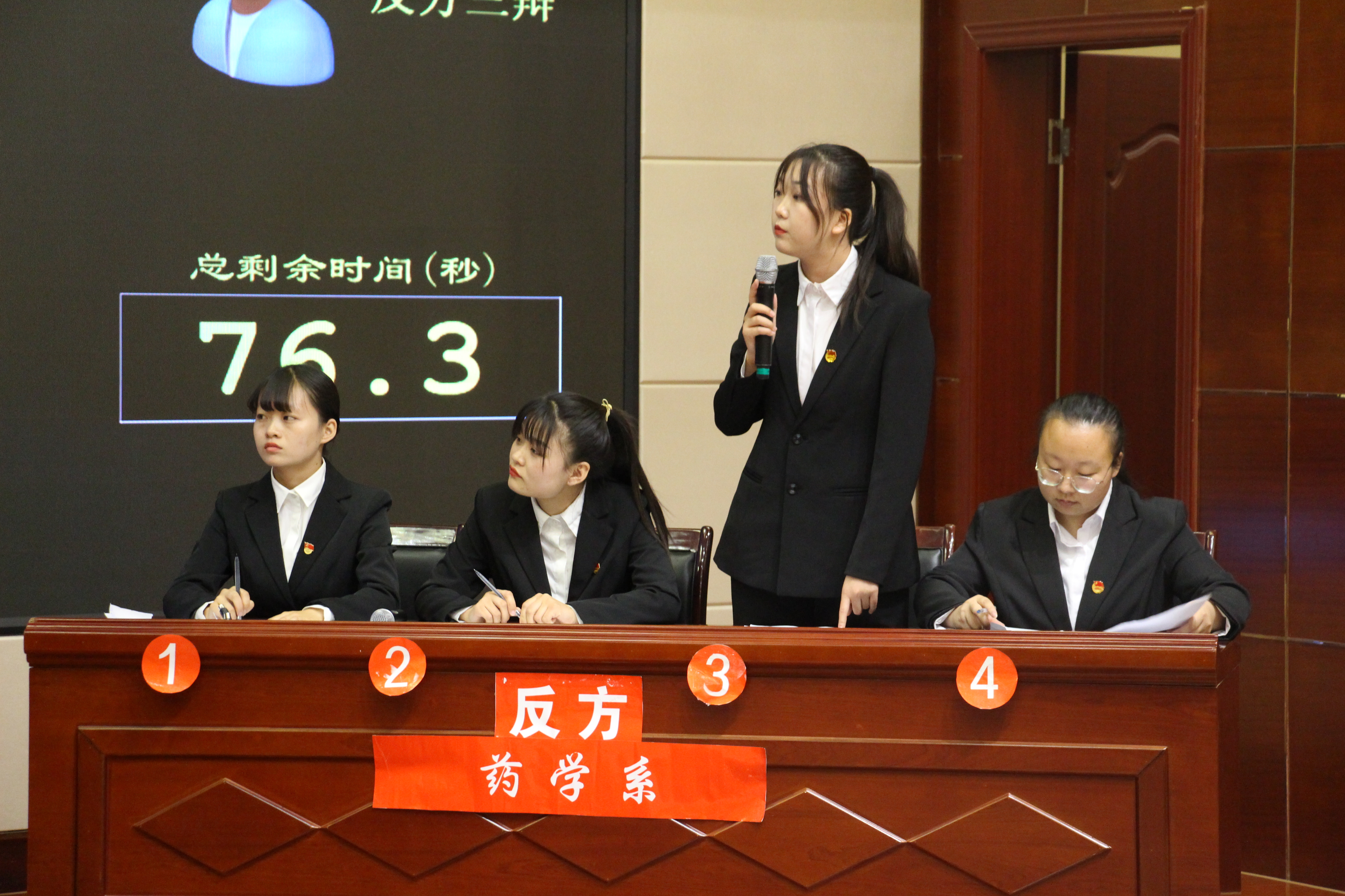 經(jīng)過11場次的比賽,電子信息工程系代表隊(duì)和藥學(xué)系代表隊(duì)進(jìn)入最后決賽。決賽現(xiàn)場,正反雙方針對(duì)高素質(zhì)技術(shù)技能人才以“仁”還是以“智”為先拉開激烈交戰(zhàn)。雙方選手在立論、駁立論、攻辯等環(huán)節(jié)中思路清晰,引經(jīng)據(jù)典,高潮迭起。自由辯論環(huán)節(jié),雙方唇槍舌戰(zhàn),針鋒相對(duì),步步為營,愈辯愈烈,精彩紛呈,觀眾也積極互動(dòng),現(xiàn)場氣氛十分活躍。