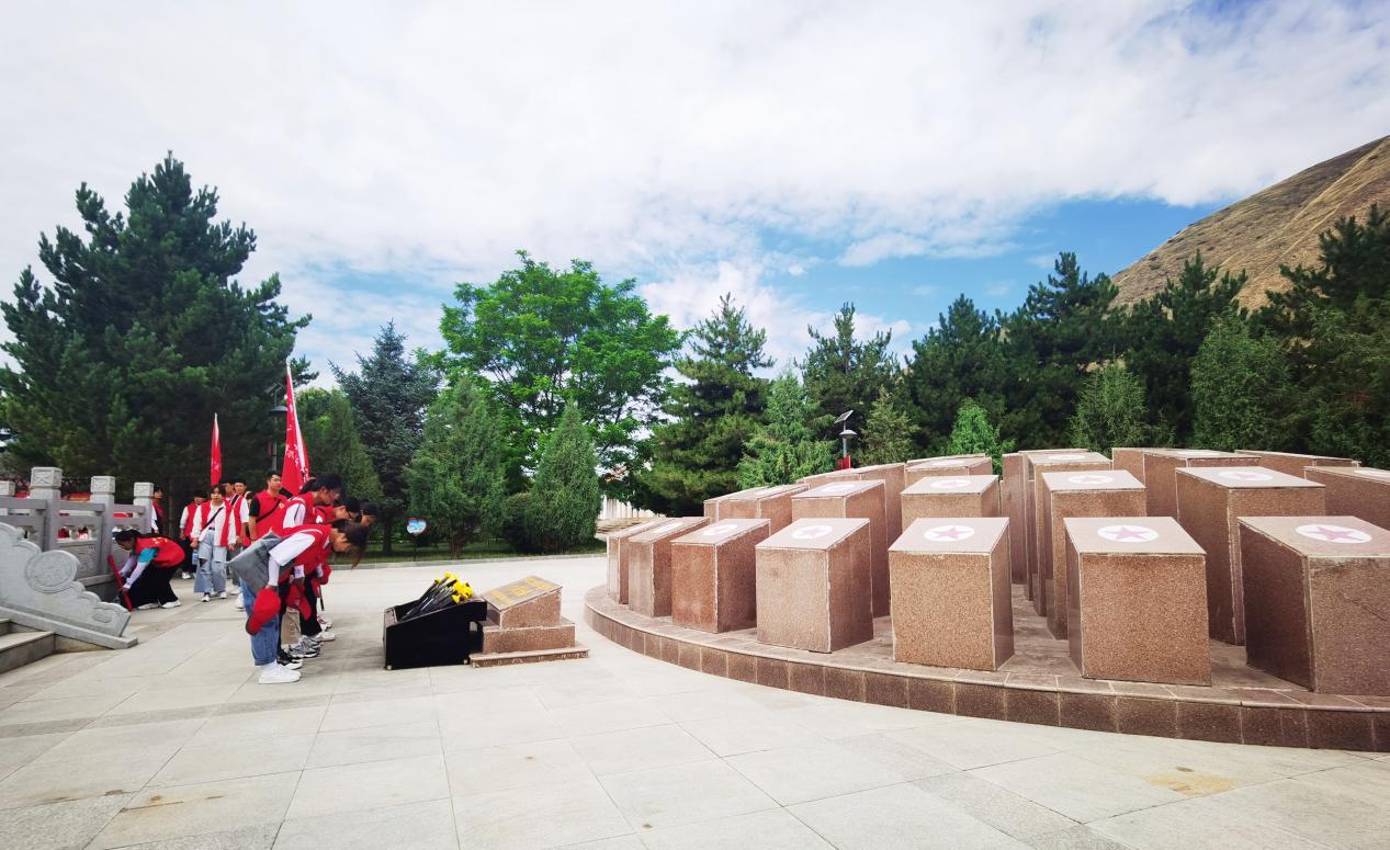 圖為實(shí)踐隊(duì)員在古浪戰(zhàn)役紀(jì)念館烈士墓碑前敬獻(xiàn)鮮花