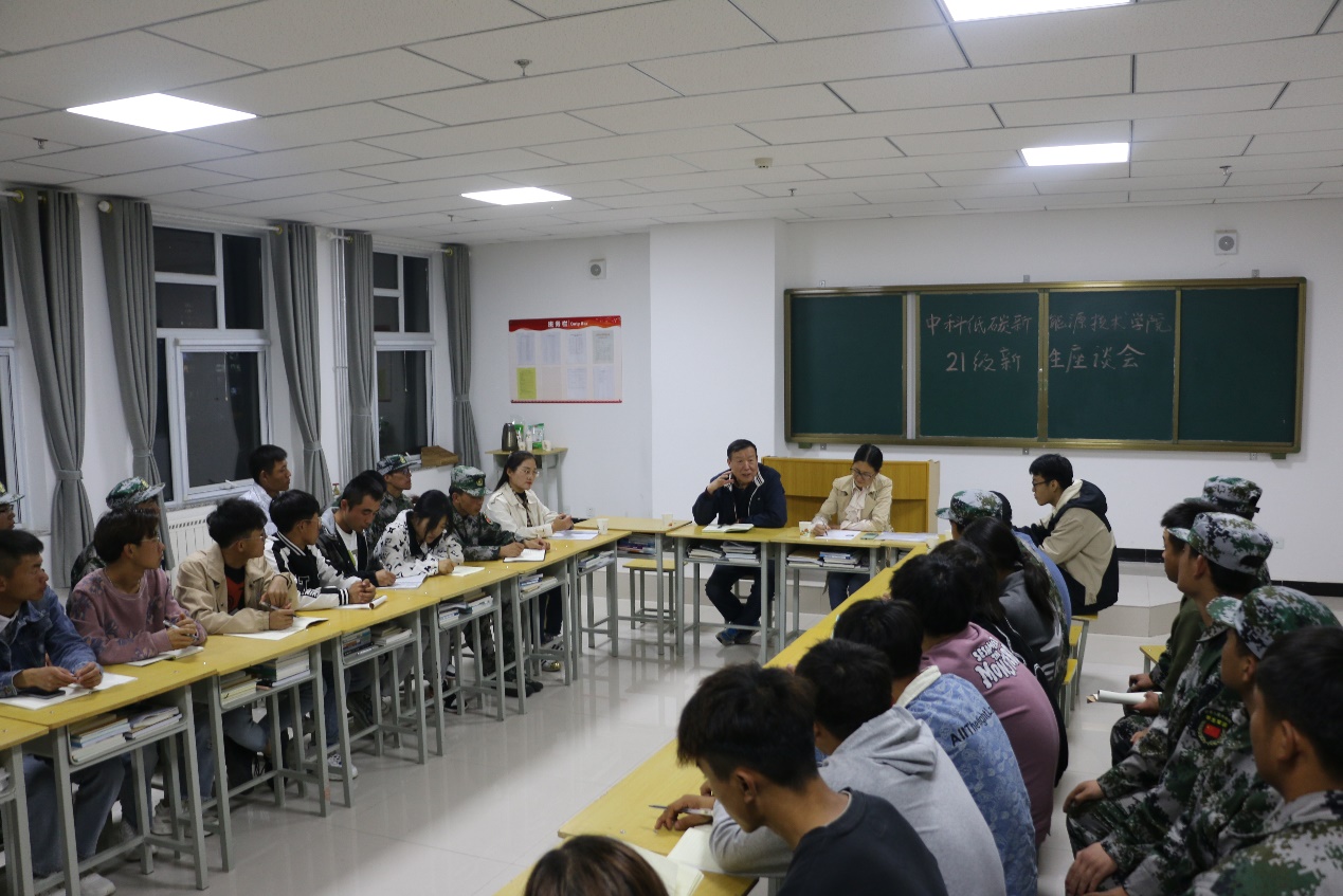 座談會上,楊存忠教授、米麗娟博士對新同學(xué)的到來表示熱烈歡迎,就同學(xué)們的軍訓(xùn)情況、學(xué)習(xí)生活情況進(jìn)行了解。在互動交流環(huán)節(jié),對同學(xué)們存在的疑問,從所學(xué)專業(yè)與國家雙碳戰(zhàn)略聯(lián)系的角度就專業(yè)開設(shè)淵源、個人發(fā)展規(guī)劃、知識技能儲備、就業(yè)方向前景等方面進(jìn)行答疑解惑、分析指導(dǎo)。