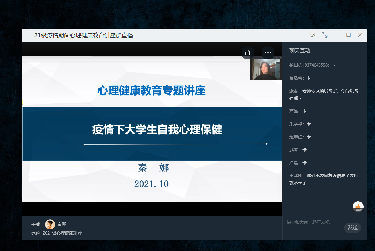為提升我系學(xué)生對新冠肺炎的科學(xué)認(rèn)識,做好心理健康知識宣傳普及,疏導(dǎo)學(xué)生因封閉管理帶來的負(fù)面情緒,營造強信心、暖人心、聚生心的校園氛圍,在經(jīng)濟管理系黨總支的領(lǐng)導(dǎo)部署下,學(xué)生黨支部精心整理了新型冠狀病毒肺炎相關(guān)學(xué)習(xí)資料及新冠肺炎疫情下促進大學(xué)生心理健康相關(guān)網(wǎng)絡(luò)課程,邀請學(xué)院心里健康咨詢師秦娜老師組織開展疫情防控線上學(xué)習(xí)活動。此次學(xué)習(xí)活動面向全系2021級全體同學(xué),旨在幫助學(xué)生更好地了解有關(guān)新冠肺炎防護的知識,緩解同學(xué)們在封閉管理期間產(chǎn)生的煩躁不安等情緒,正確應(yīng)對疫情,有效保護自身安全。