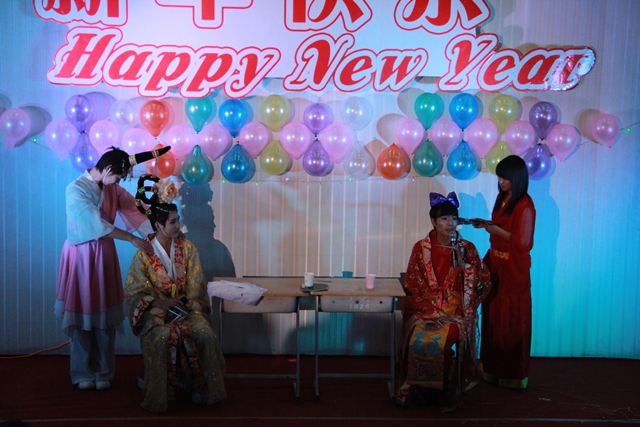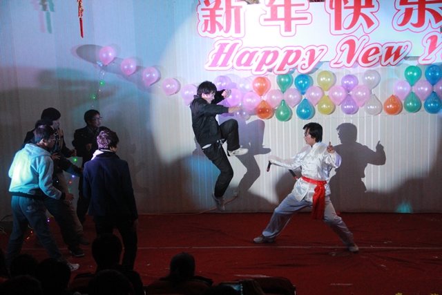 我系趙磊老師的薩克斯獨奏節(jié)奏明朗,富有磁力,優(yōu)美的旋律深深地吸引了全體觀眾。12級光熱班的張新輝,張一凡等同學(xué)反串《甄嬛傳》令現(xiàn)場的觀眾捧腹大笑。一首《祝福》的朗誦牽掛了所有觀眾,武術(shù)《中國功夫》令得全場驚呼,舞蹈《江南style》的精彩演出吸引了所有人的眼球。最后晚會在《同一首歌》的大合唱中緩緩落幕。