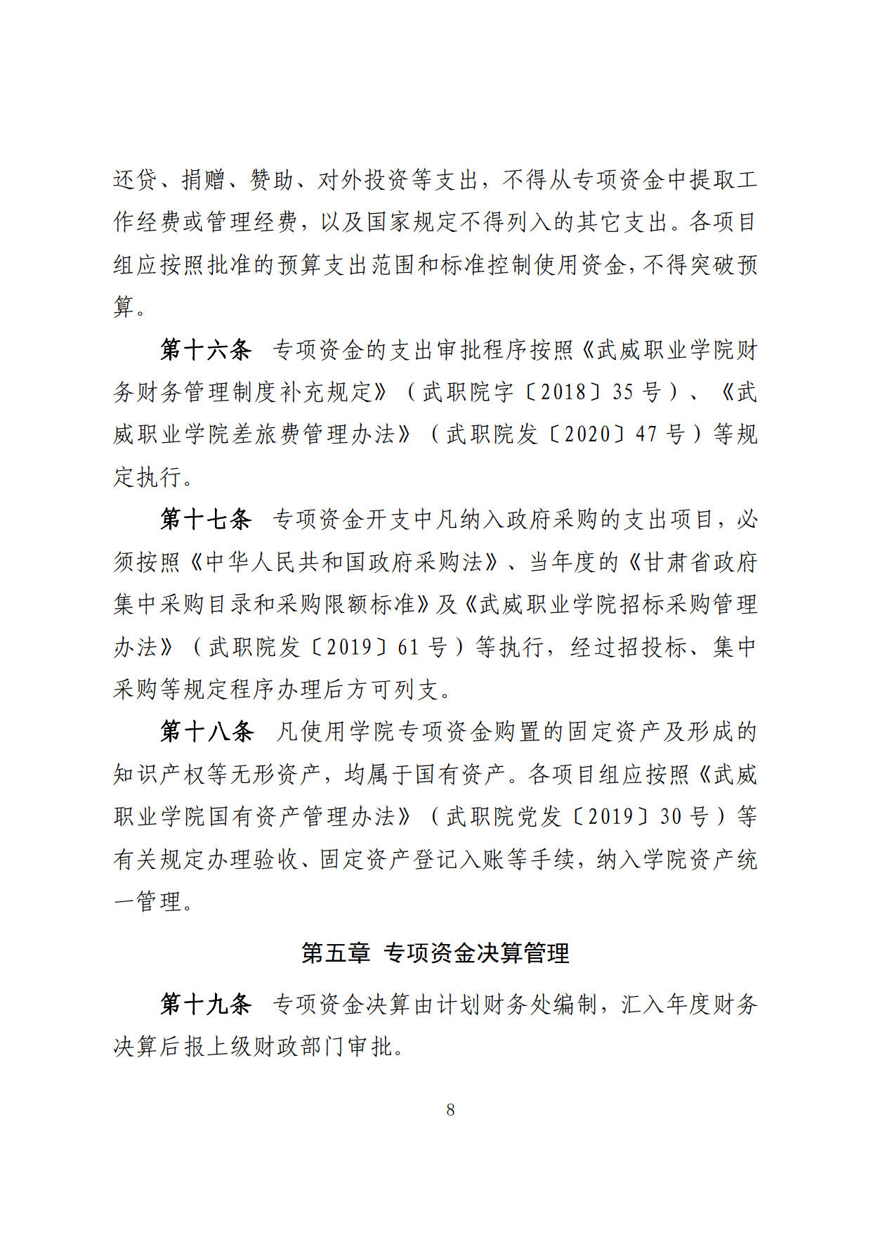 關于印發(fā)《武威職業(yè)學院落實“技能甘肅”專項資金管理辦法》的通知