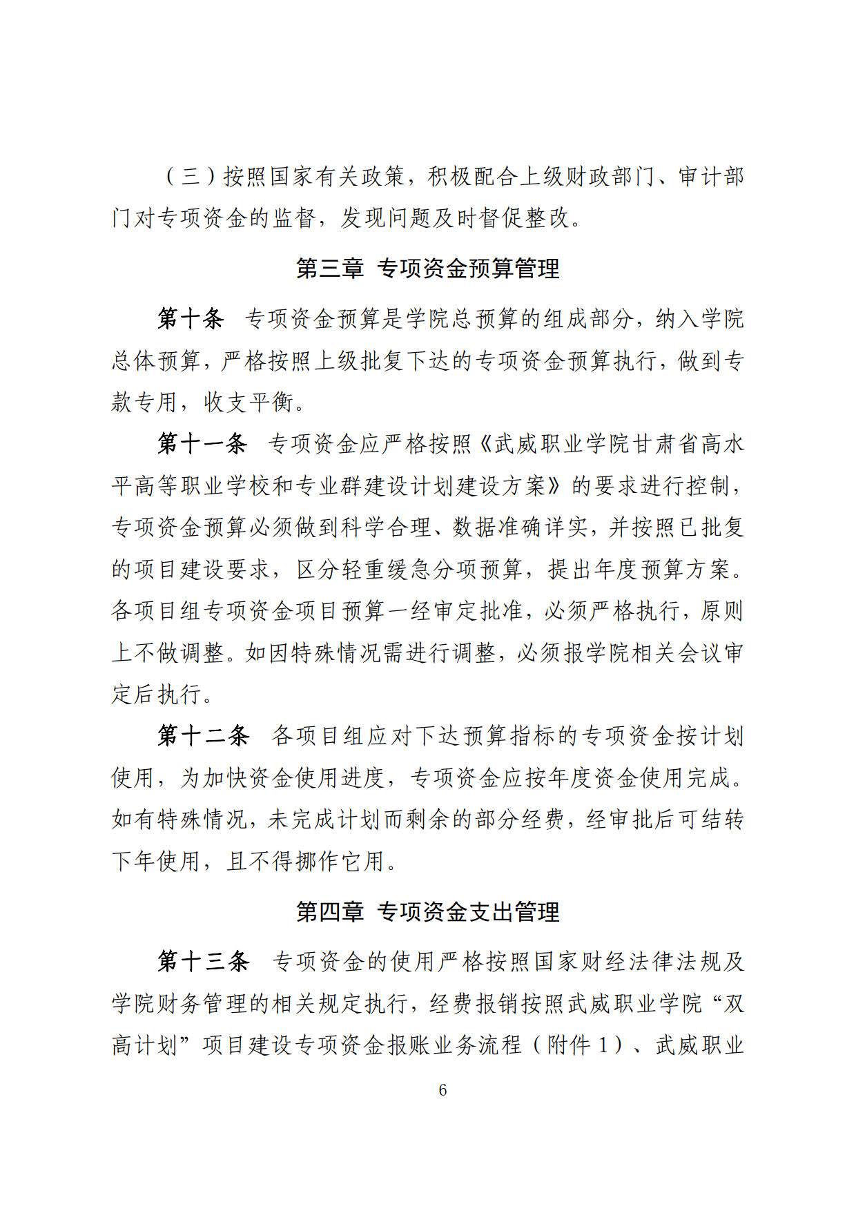 關于印發(fā)《武威職業(yè)學院“雙高計劃”項目建設專項資金管理辦法》的通知