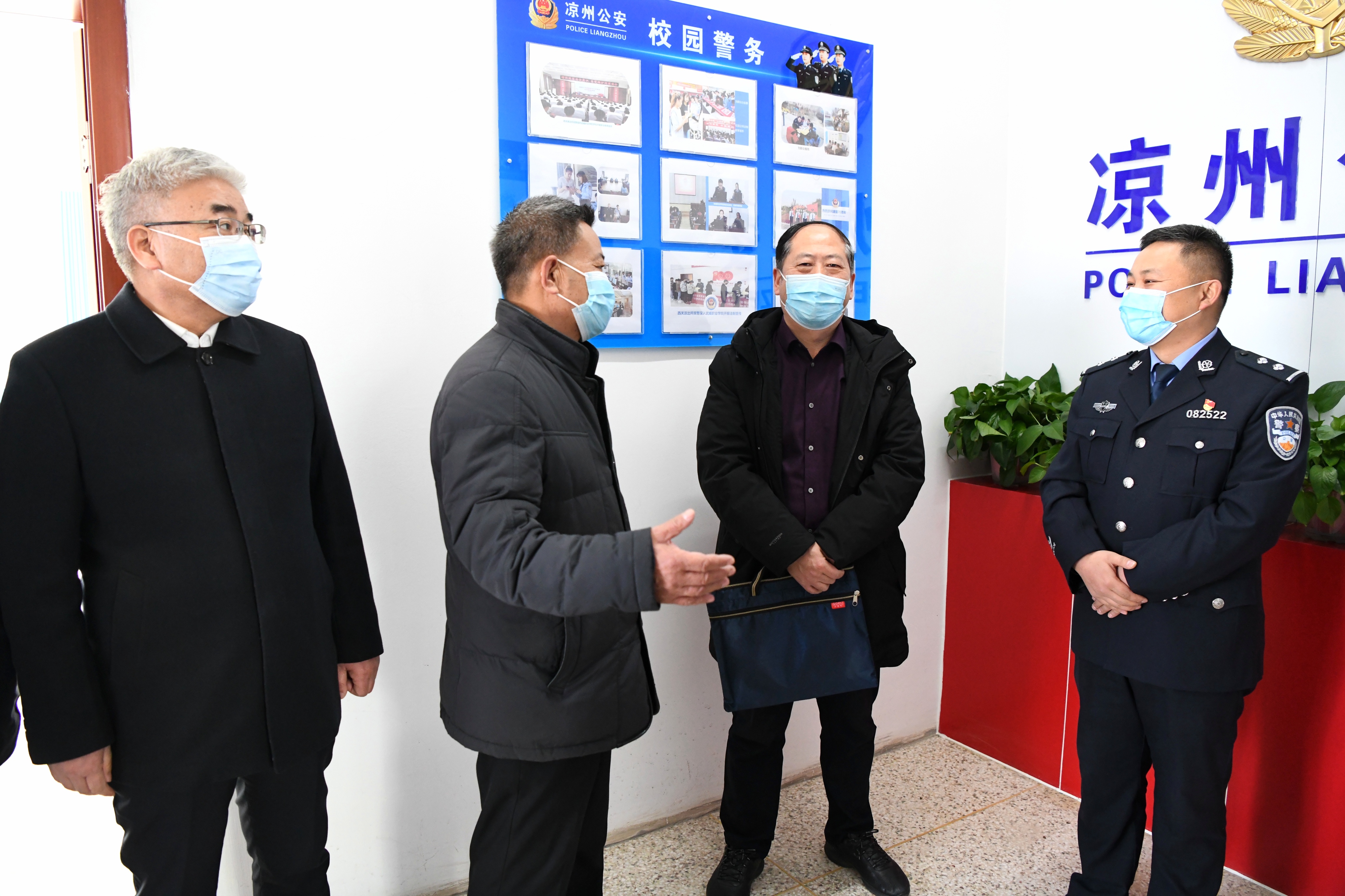1月13日下午,平安甘肅建設(shè)工作第八考評(píng)組在省高等學(xué)校服務(wù)中心主任崔亮的帶領(lǐng)下來校實(shí)地檢查考評(píng)2021年度平安校園建設(shè)工作。市委政法委常務(wù)副書記連林中,學(xué)院黨委書記、院長(zhǎng)趙明,黨委委員、副院長(zhǎng)何毅,黨委委員、紀(jì)委書記、監(jiān)察專員陳曉煜,黨委委員、副院長(zhǎng)王守云陪同檢查考評(píng)。