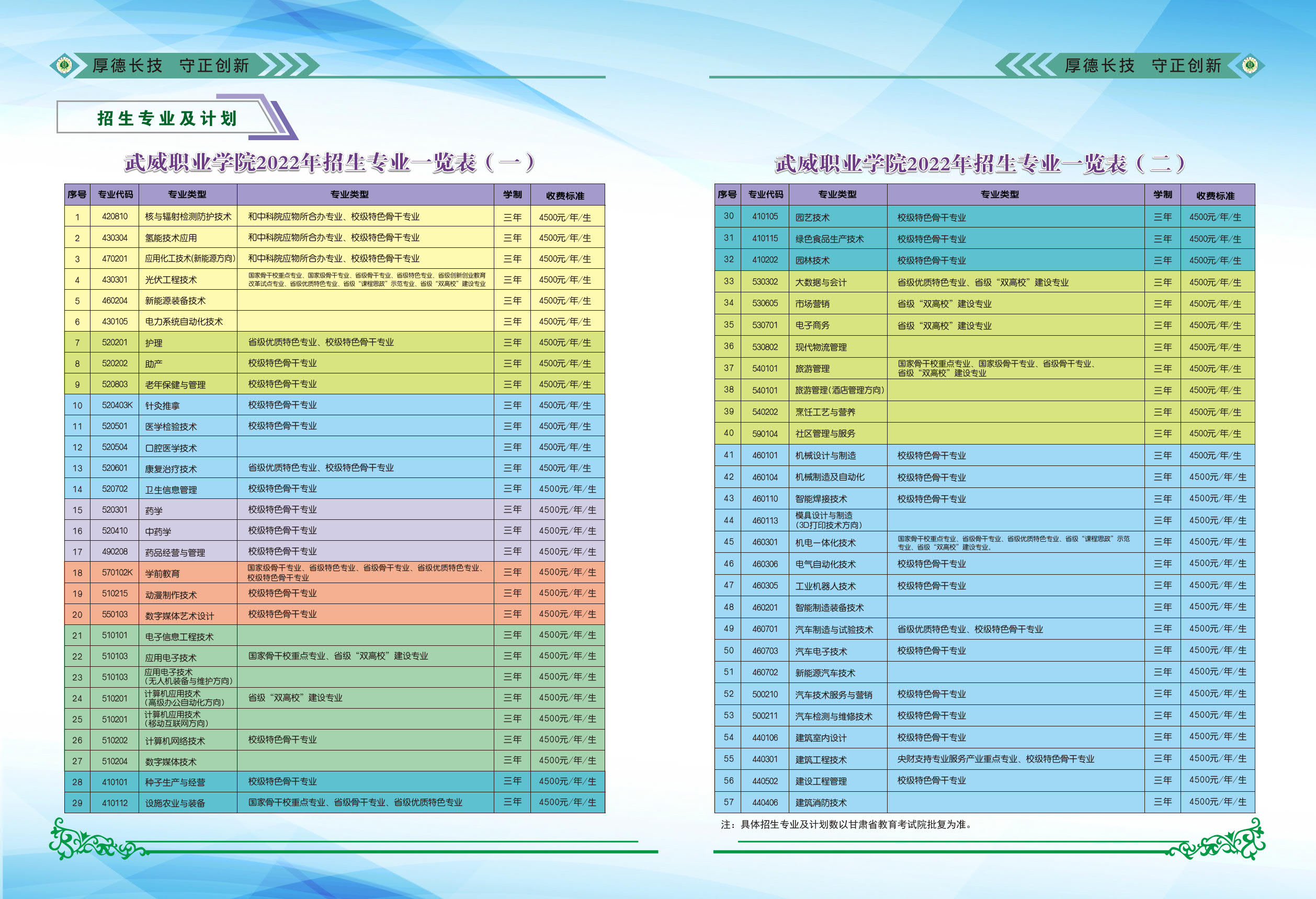 武威職業(yè)學(xué)院2022年招生簡章