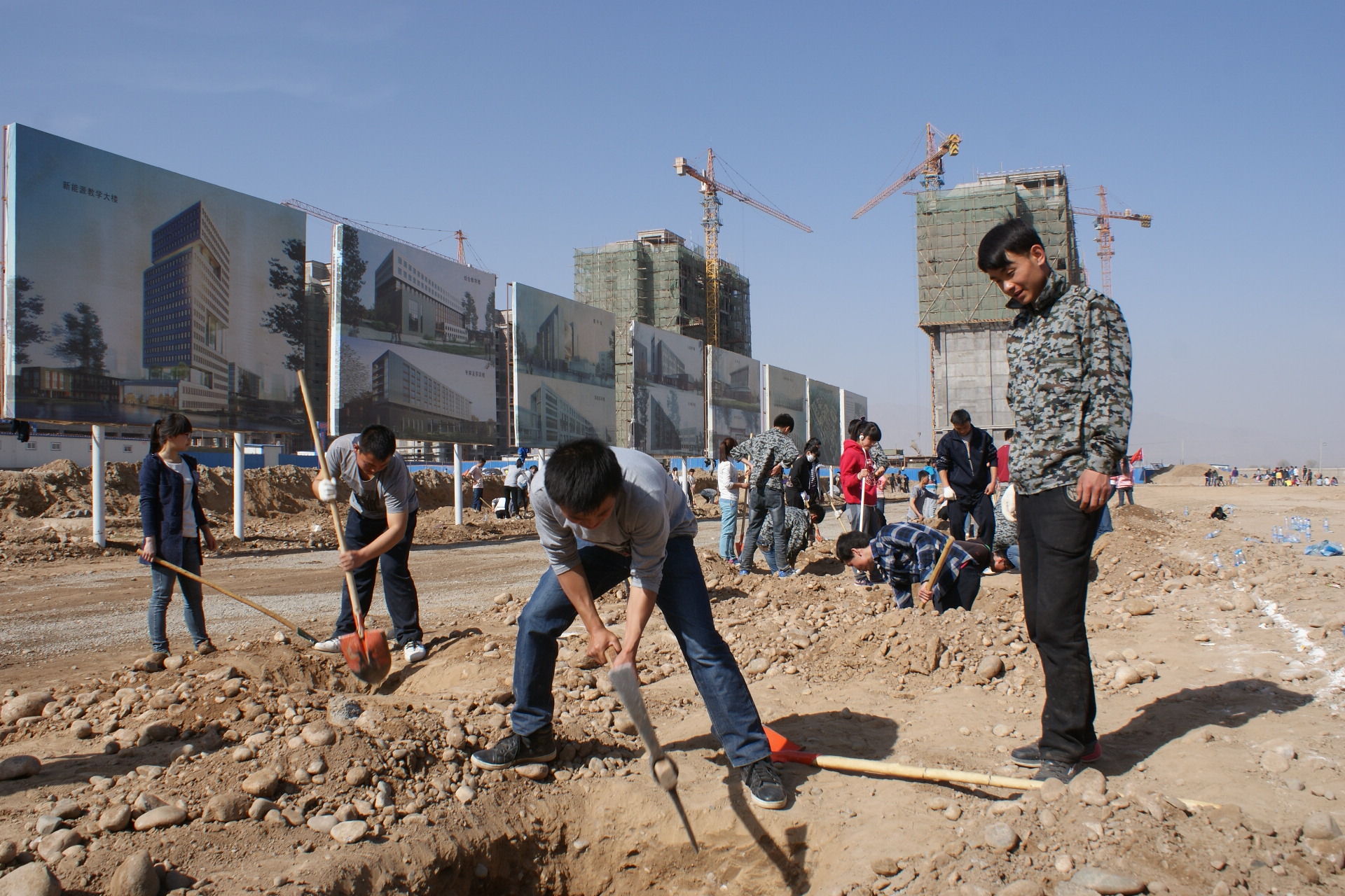植樹現(xiàn)場一派忙碌的景象,大家有秩序地領(lǐng)取工具,三五一組,分工明確,揮動鎬頭,掘土挖坑,再將一顆顆樹苗埋窩、培土、踩實、澆灌。經(jīng)過三天的緊張勞作,我系師生在指定區(qū)域完成了280個樹坑的開挖和樹木栽植任務(wù)。