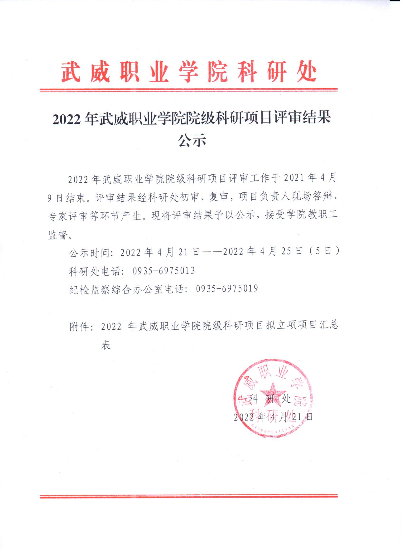 2022年武威職業(yè)學(xué)院院級(jí)科研項(xiàng)目評(píng)審結(jié)果公示