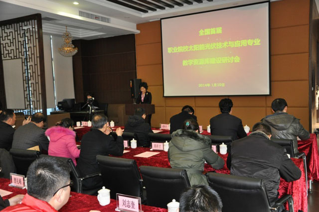 在研討會上,來自職業(yè)院校領(lǐng)導(dǎo)及光伏專業(yè)的專家教授分別對專業(yè)教學(xué)資源庫的建設(shè)提出了各自的意見及建議。中國職教學(xué)會校企合作工作委員會主任潘海生發(fā)表了重要講話。職教聯(lián)盟秘書長陳建民就聯(lián)盟2013年度工作進行了總結(jié),并對2014年度工作進行了規(guī)劃。無錫科技職業(yè)學(xué)院的曹建林教授就專業(yè)建設(shè)服務(wù)區(qū)域經(jīng)濟進行了深入淺出的分析。蘇州職業(yè)大學(xué)的曹豐文教授提出了對于教學(xué)資源庫建設(shè)目標(biāo)與思路的意見與看法。無錫尚德公司副總裁朱景兵博士與在座的與會人士交流了怎樣對接企業(yè)培養(yǎng)技能人才的經(jīng)驗。