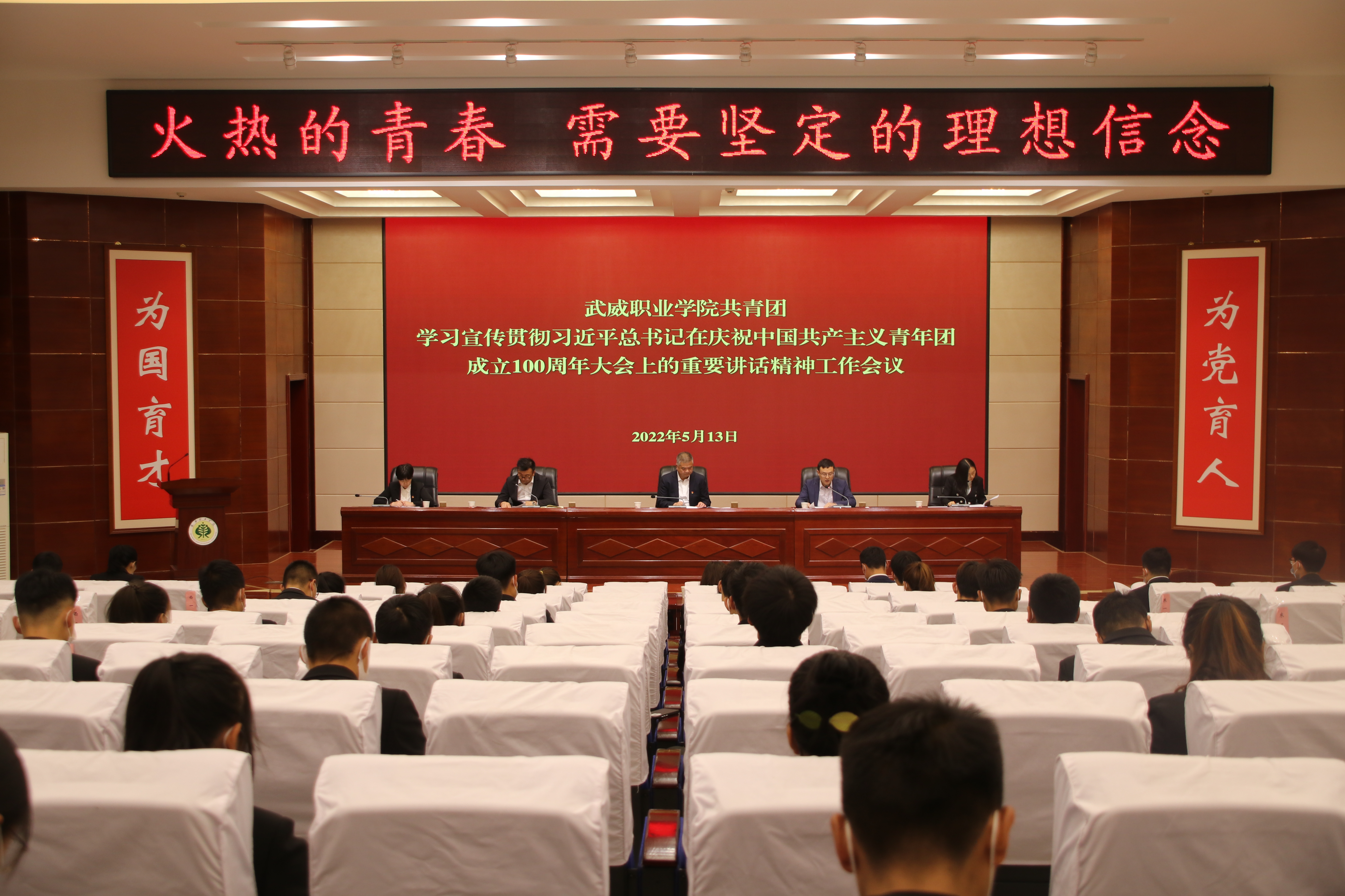會議指出,學(xué)習(xí)宣傳貫徹習(xí)近平總書記在慶祝中國共青團(tuán)成立100周年大會上的重要講話精神,是學(xué)校各級團(tuán)組織和廣大團(tuán)員青年當(dāng)前和今后一段時(shí)期的首要政治任務(wù),要堅(jiān)持與黨同心、跟黨奮斗,學(xué)深悟透總書記重要講話精神,自覺踐行新時(shí)代共青團(tuán)的使命任務(wù),培養(yǎng)純潔擔(dān)當(dāng)?shù)膱F(tuán)員隊(duì)伍,成為走在時(shí)代前列的先進(jìn)組織,把學(xué)習(xí)成果體現(xiàn)到 “雙高計(jì)劃”學(xué)校建設(shè)和武威職業(yè)技術(shù)大學(xué)申辦工作的具體行動上,以優(yōu)異成績迎接黨的二十大勝利召開。