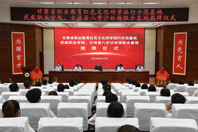 首批甘肅省職業(yè)教育紅色文化研學旅行示范基地——武威職業(yè)學院 古浪縣八步沙林場聯(lián)合基地揭牌儀式隆重舉行