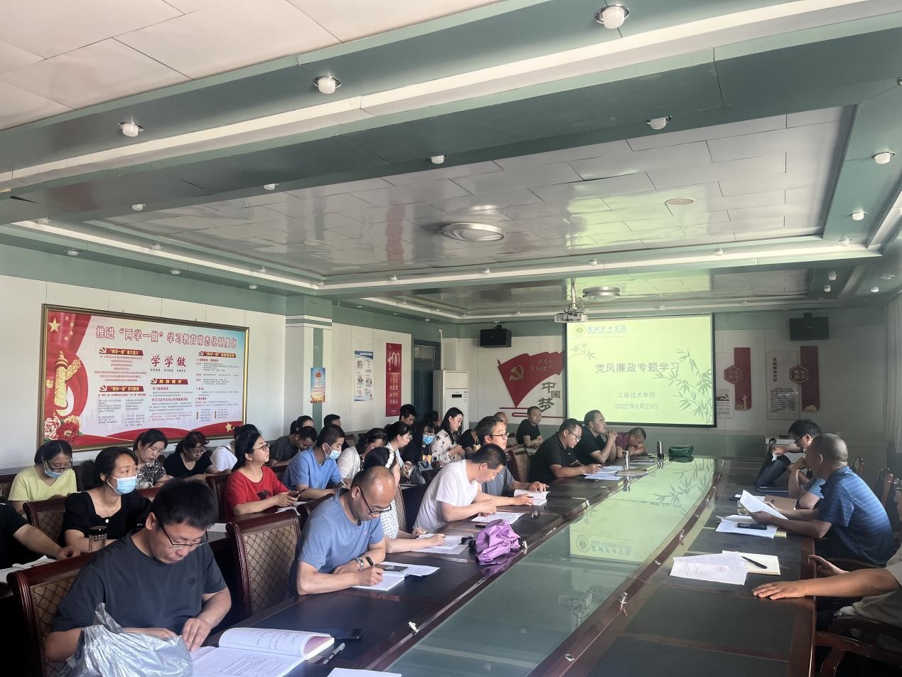 6月23日,工程技術學院在博學樓黨員活動室召開了2022年度上半年黨風廉政建設工作專題會議。學院領導班子成員、全體教職工參加了會議,會議由學院黨總支書記梁忠主持。