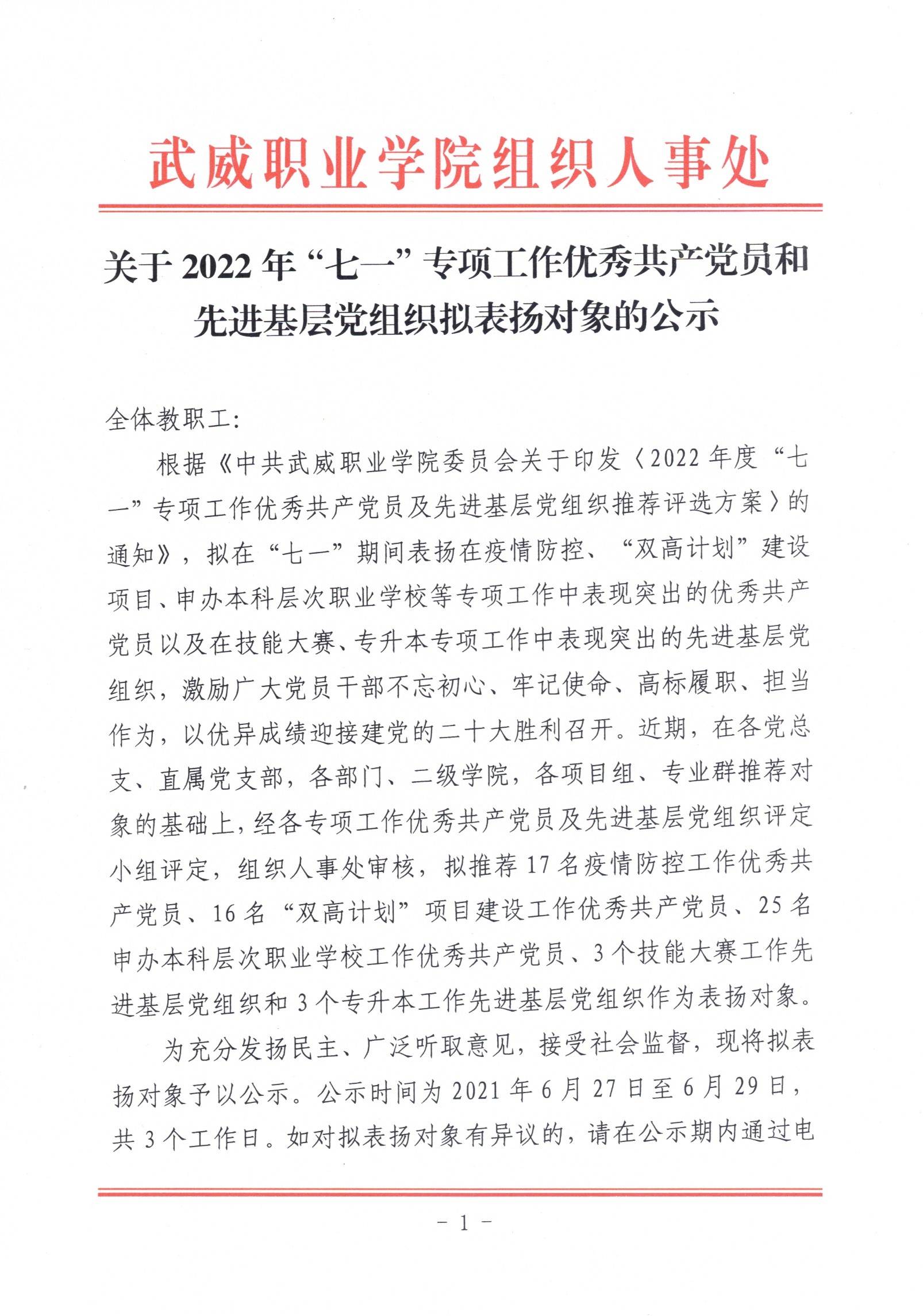關(guān)于2022年“七一”專項(xiàng)工作優(yōu)秀共產(chǎn)黨員和先進(jìn)基層黨組織擬表?yè)P(yáng)對(duì)象的公示