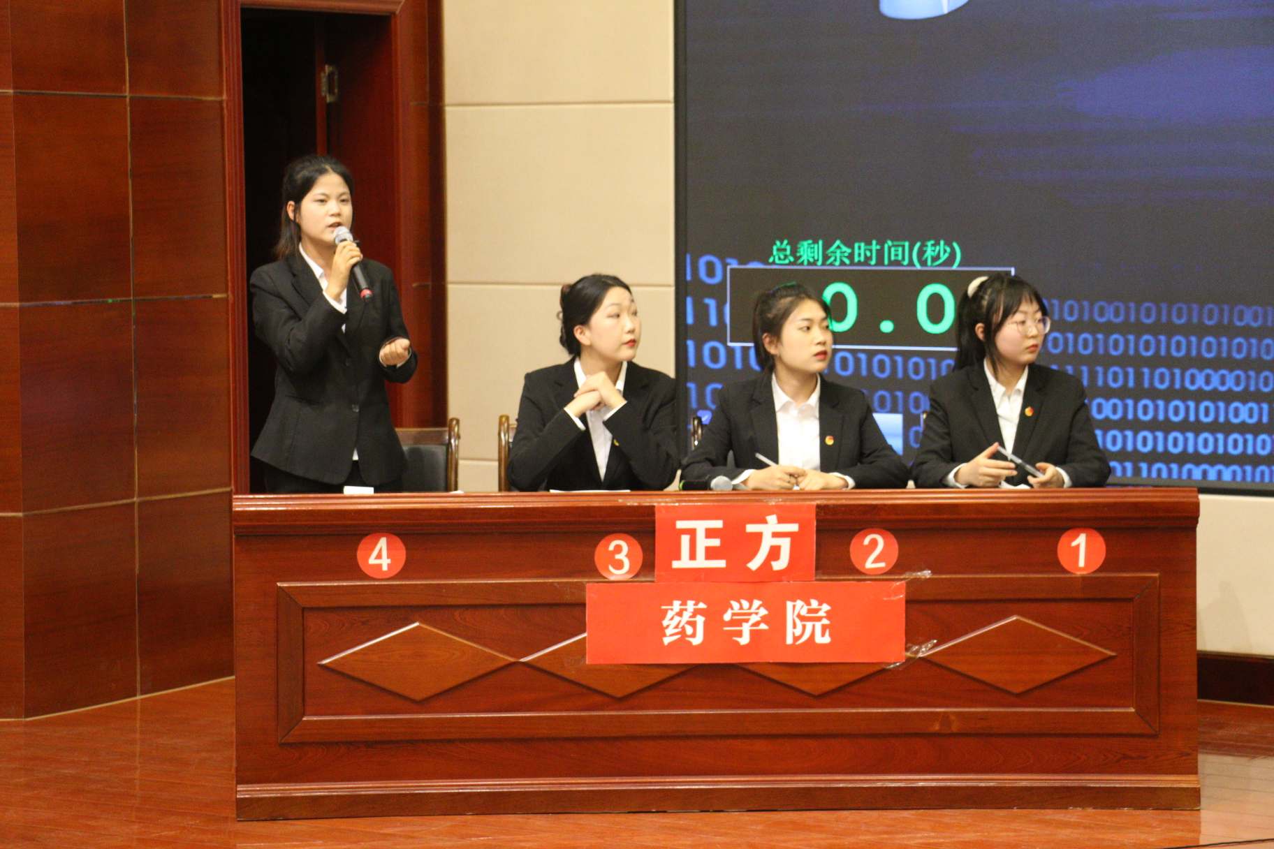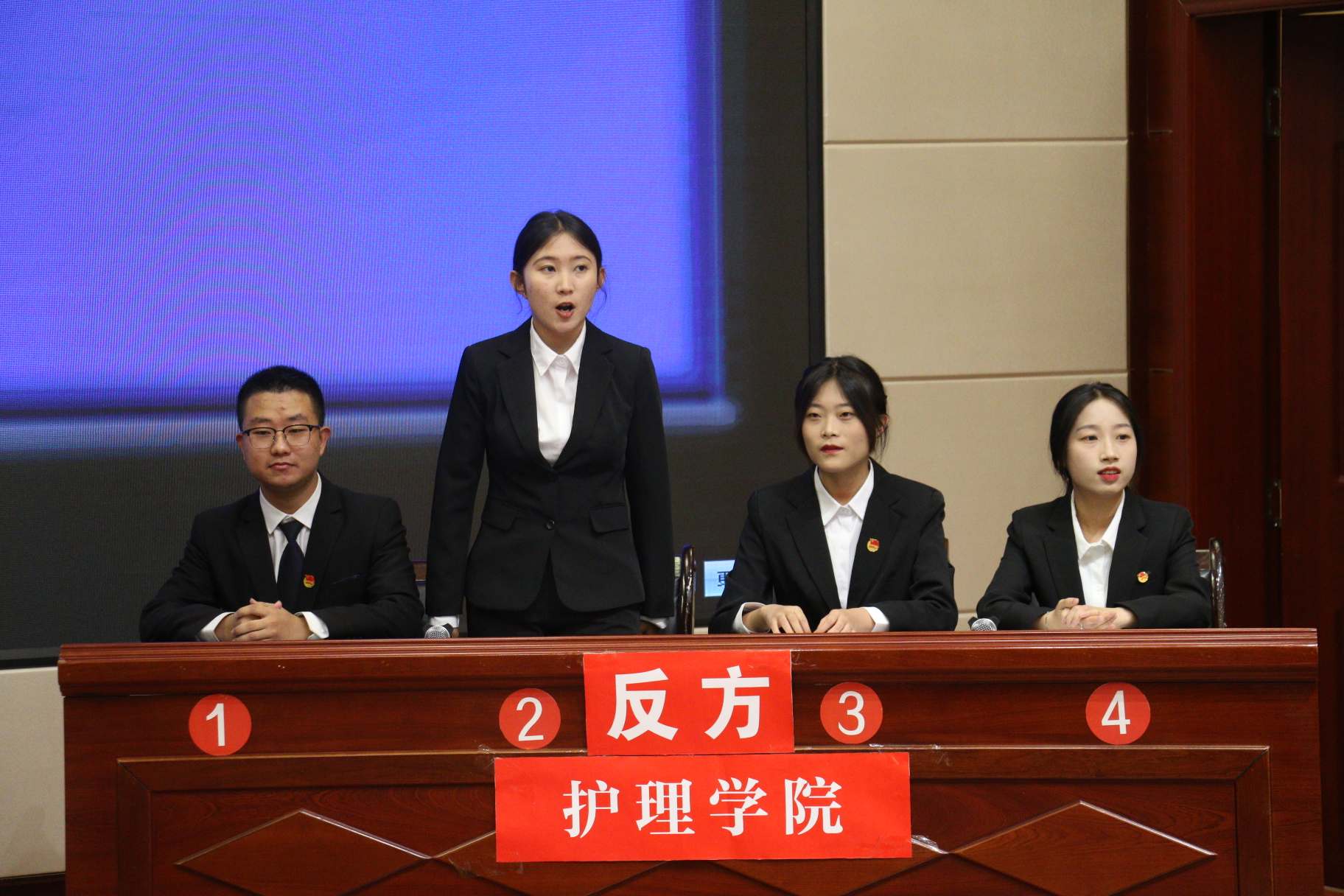 經(jīng)過11場次的比賽,藥學(xué)院代表隊(duì)和護(hù)理學(xué)院代表隊(duì)進(jìn)入最后決賽。決賽現(xiàn)場,正反雙方針對誠信主要靠“他律”還是主要靠“自律”拉開激烈交戰(zhàn)。雙方辯手圍繞辯題你來我往、侃侃而談、針鋒相對,卻不失風(fēng)度;立論階段,旁征博引,攻辯階段雙方辯手“激烈廝殺”;自由辯論環(huán)節(jié),辯論雙方的金句妙言、據(jù)理力爭、滔滔不絕將比賽氣氛推向高潮,贏得在場聽眾的陣陣掌聲。