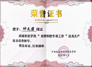 經(jīng)個人申報、學(xué)院推薦、學(xué)校審核,我院仲文君同志榮獲“疫情防控專項工作”優(yōu)秀共產(chǎn)黨員榮譽(yù)稱號,李玉榮同志榮獲“雙高計劃建設(shè)項目專項工作”優(yōu)秀共產(chǎn)黨員榮譽(yù)稱號,申賓德同志榮獲“申辦本科層次職業(yè)學(xué)校專項工作”優(yōu)秀共產(chǎn)黨員榮譽(yù)稱號。