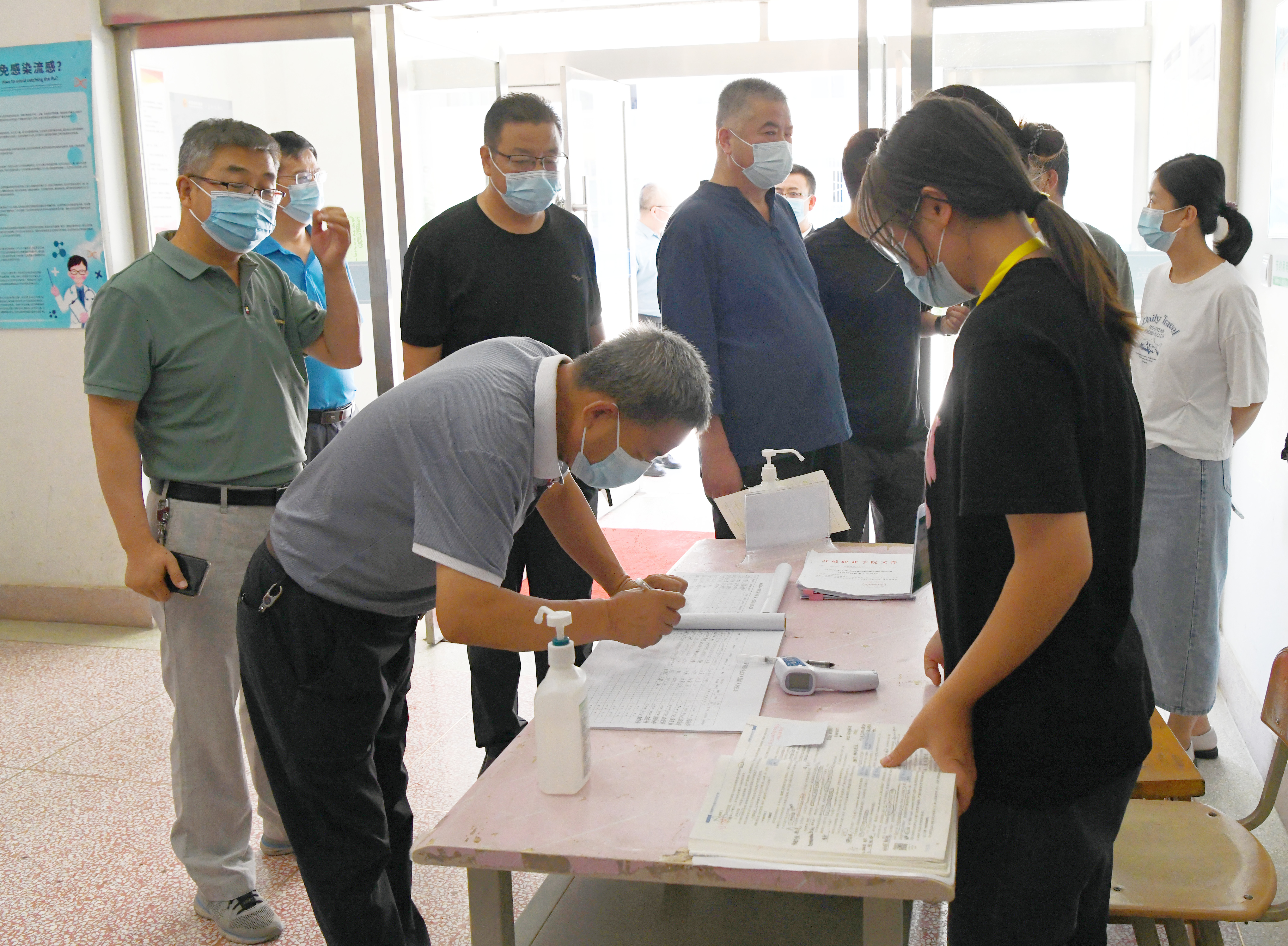720日上午,學校黨委書記、校長趙明,副校長王永緒,紀委書記、監(jiān)察專員陳曉煜,副校長張開禮、王守云帶領學校辦公室、宣傳統(tǒng)戰(zhàn)部、紀檢監(jiān)察綜合室、學生工作處、后勤處、安全保衛(wèi)處和相關二級學院負責人深入學校東大門、1號餐廳、超市、學生公寓、核酸檢測點等地,實地檢查指導學校疫情防控工作。