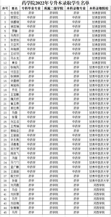 藥學(xué)院2022屆畢業(yè)生“專升本”錄取名單