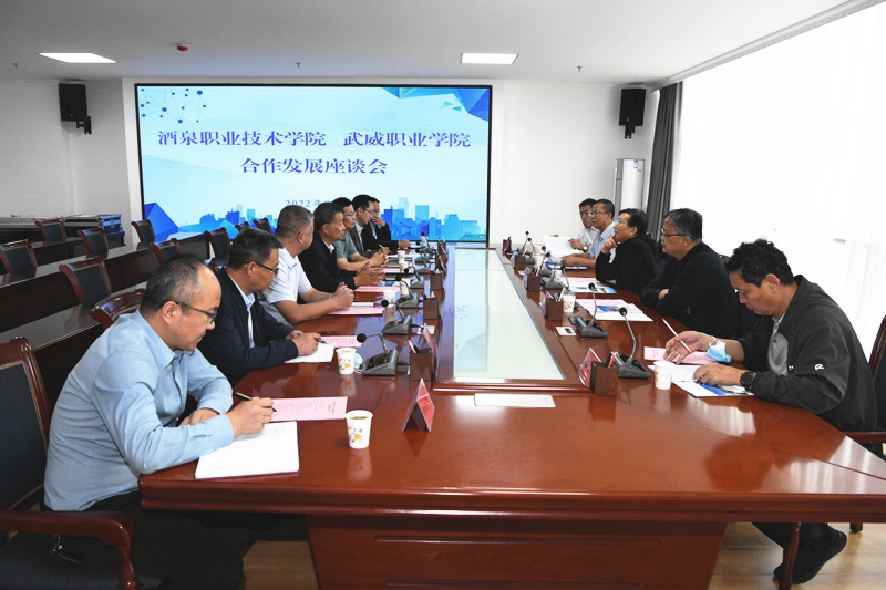 易志軍一行先后到學校紅色文化藝術館、翟存祥思想政治理論課名師工作室、武威市體育場、旅游管理專業(yè)實訓室等地考察并在能源科技樓811會議室召開了兩校合作發(fā)展座談會,趙明向易志軍一行詳細介紹了學校近年來改革發(fā)展、人才培養(yǎng)、招生就業(yè)、合作辦學、“雙高計劃”學校建設等情況。易志軍就酒泉職業(yè)技術學院建設發(fā)展情況進行了詳細介紹。雙方就河西走廊職業(yè)教育與區(qū)域產(chǎn)業(yè)互動發(fā)展、融合發(fā)展、高質量發(fā)展的路徑和方法進行了深入探討,并交流了學校建設和管理方面好的經(jīng)驗和做法。