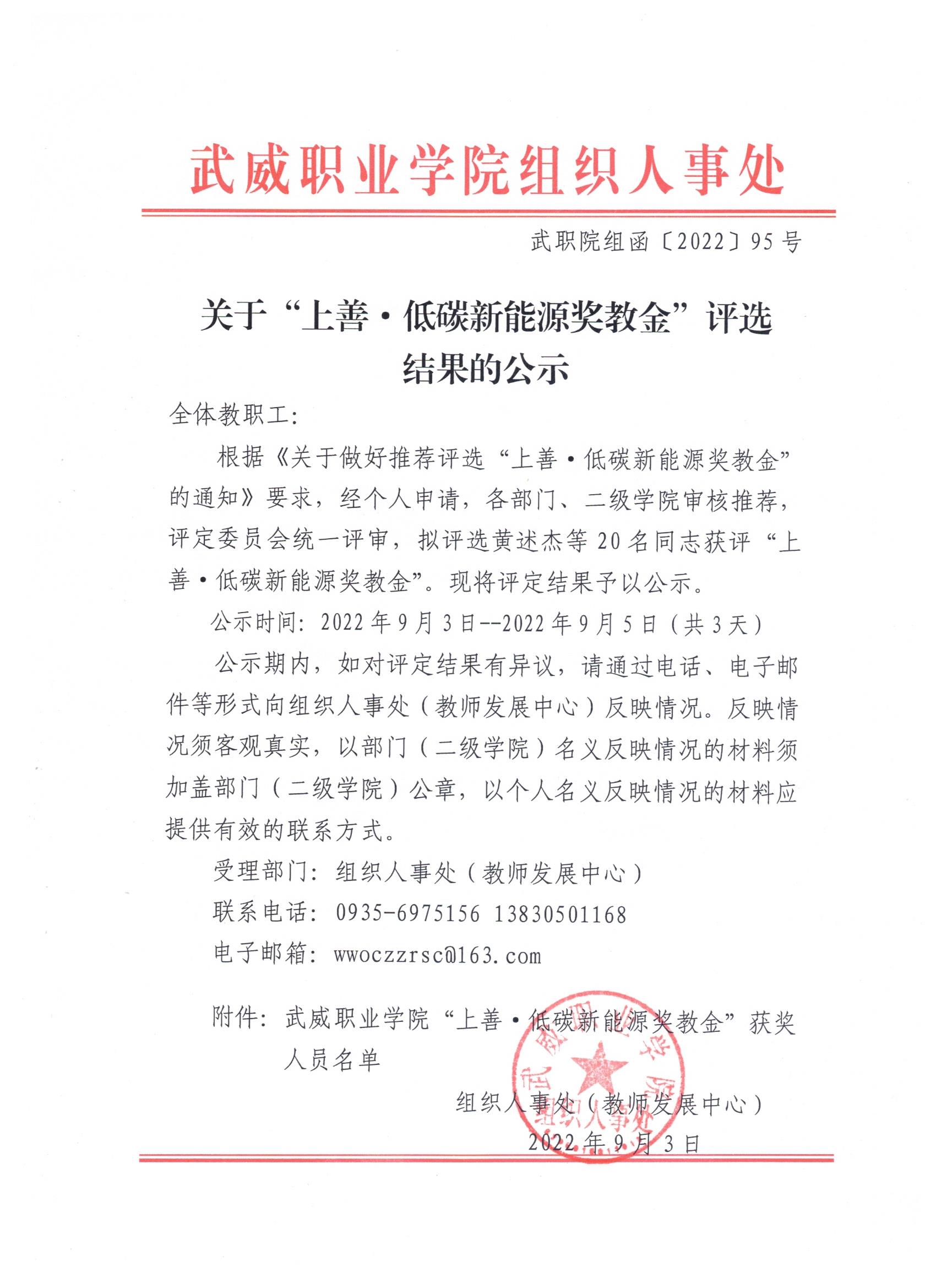 關(guān)于“上善·低碳新能源獎教金”評選結(jié)果的公示