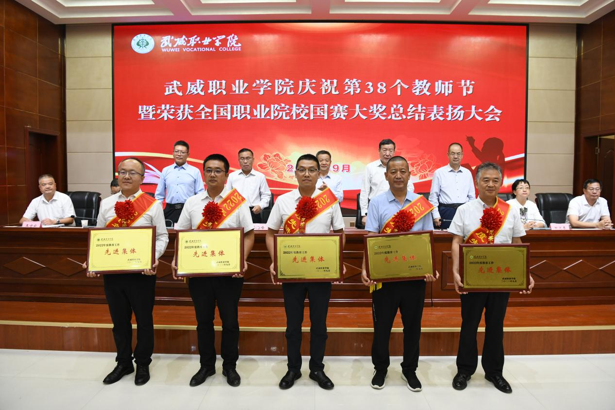 學校領(lǐng)導分別宣讀了《武威職業(yè)學院關(guān)于表揚2022年教育工作先進集體和先進個人的決定》《武威職業(yè)學院關(guān)于認定(聘任)2022年“教書育人楷?!薄敖虒W名師”“教學能手”“教學新秀”“我最喜愛的老師”和“專業(yè)(學科)帶頭人”的決定》。楊存忠、李海峰和學校領(lǐng)導分別為獲獎者代表頒發(fā)榮譽證書。