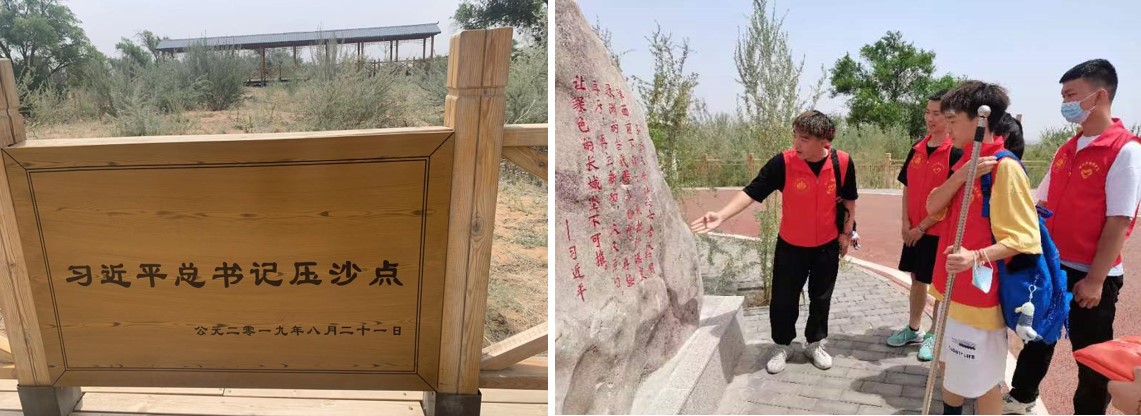 在兩山實(shí)踐基地負(fù)責(zé)人的指引下,我們參觀了習(xí)近平總書記曾經(jīng)到達(dá)過八步沙參與壓沙的目的地,認(rèn)真學(xué)習(xí)了習(xí)近平總書記在八步沙的講話精神,深刻領(lǐng)悟到了習(xí)近平總書記號(hào)召大家要弘揚(yáng)八步沙“六老漢”困難面前不低頭,敢把沙漠變綠洲的當(dāng)代愚公精神,在今后,我們將把這種精融入到實(shí)踐當(dāng)中,不負(fù)青春,不負(fù)韶華積極投身于祖國建設(shè)中。