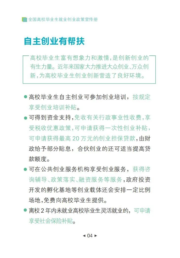 全國(guó)高校畢業(yè)生就業(yè)創(chuàng)業(yè)政策宣傳冊(cè)