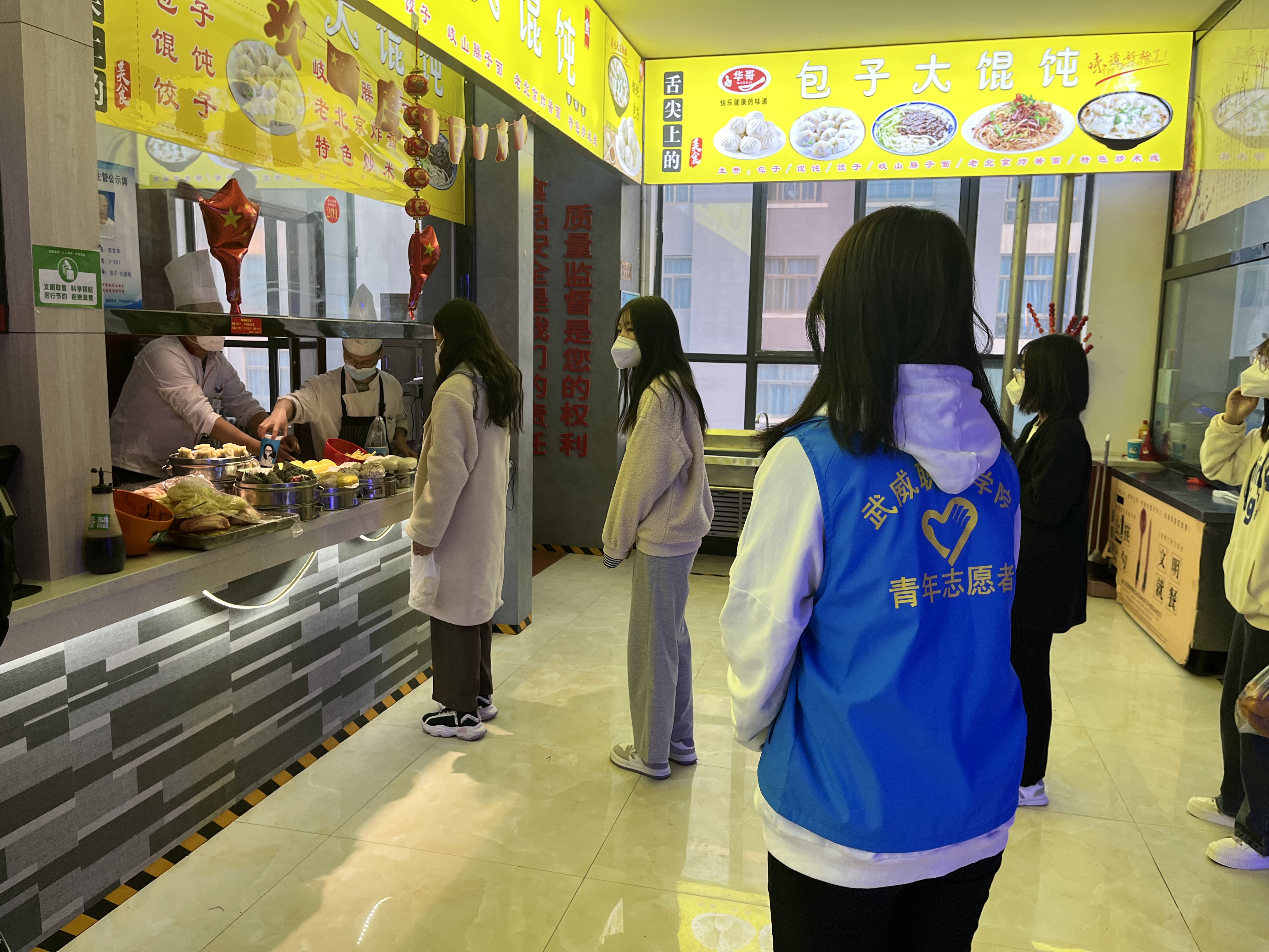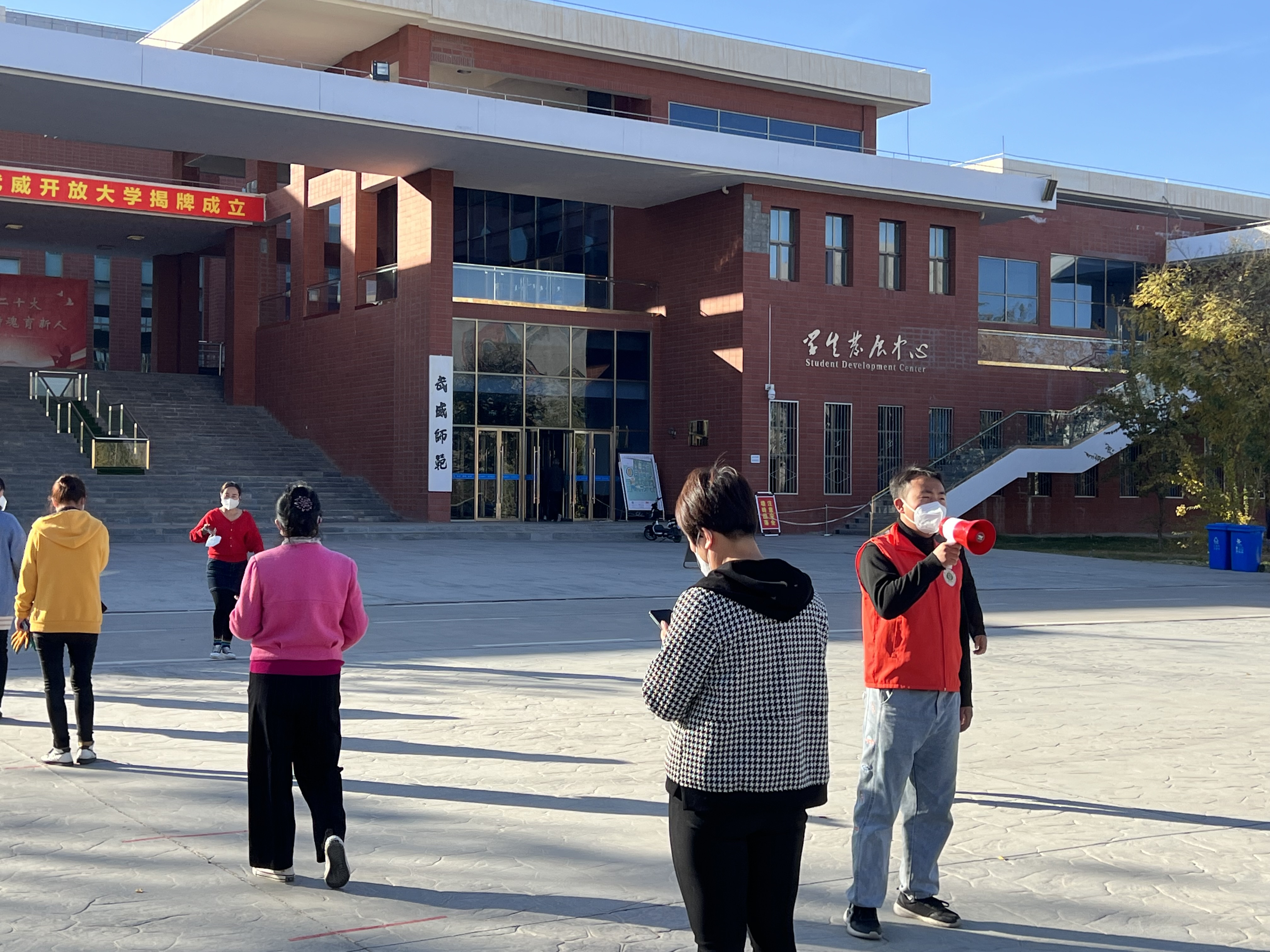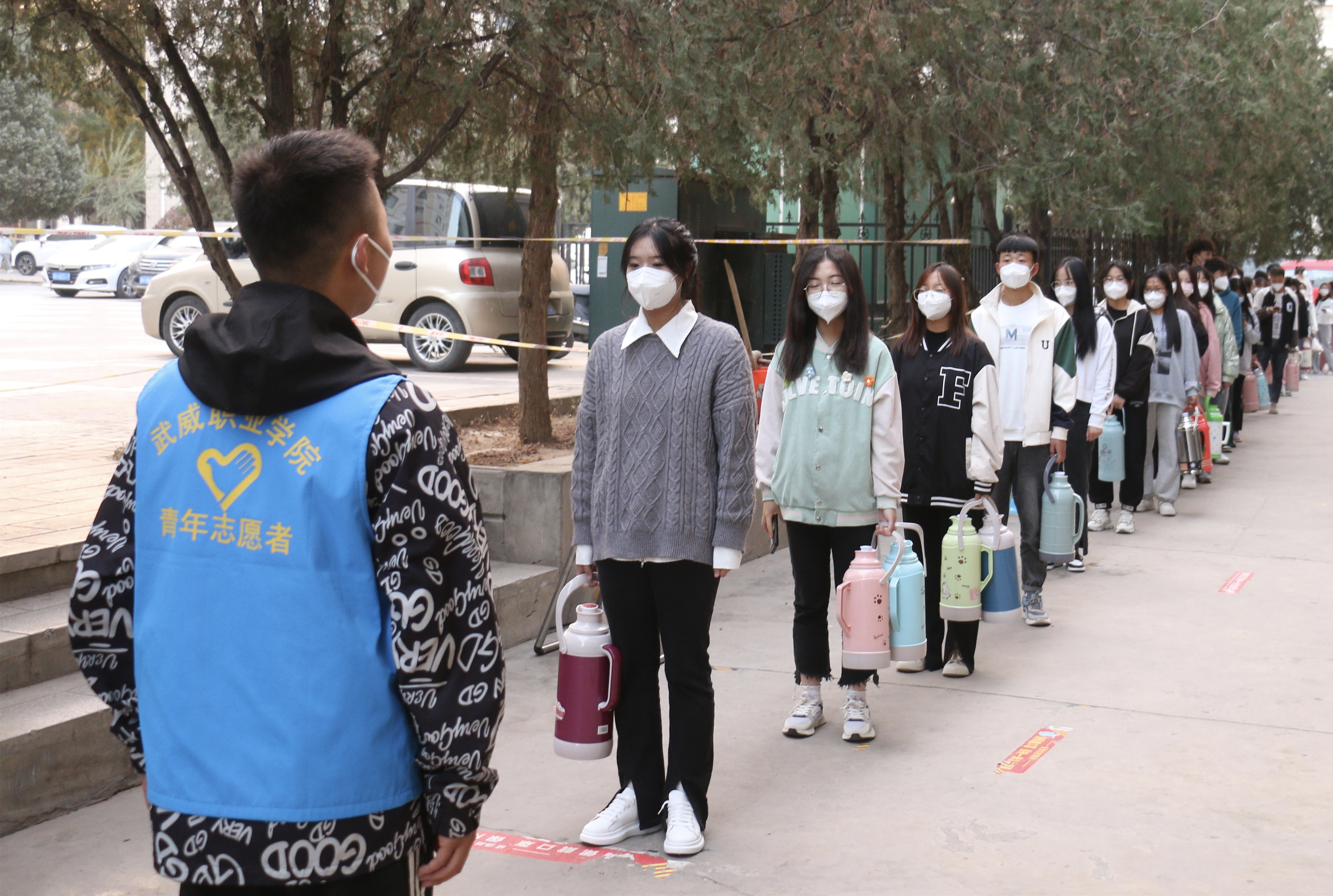 “您好,請測量體溫、掃場所碼。”“請佩戴好口罩,有序排隊(duì)……”校學(xué)生會的陶玲在學(xué)校食堂門口值班時(shí)不停地提醒著進(jìn)出打飯的同學(xué)們,這也是她參加校園疫情防控以來每天講得最多的話。自10月13日涼州區(qū)實(shí)施臨時(shí)管控以來,學(xué)校各學(xué)生組織聞令而動,身穿“藍(lán)馬甲”積極投身校園疫情防控一線,用奉獻(xiàn)溫暖了這個(gè)秋天。