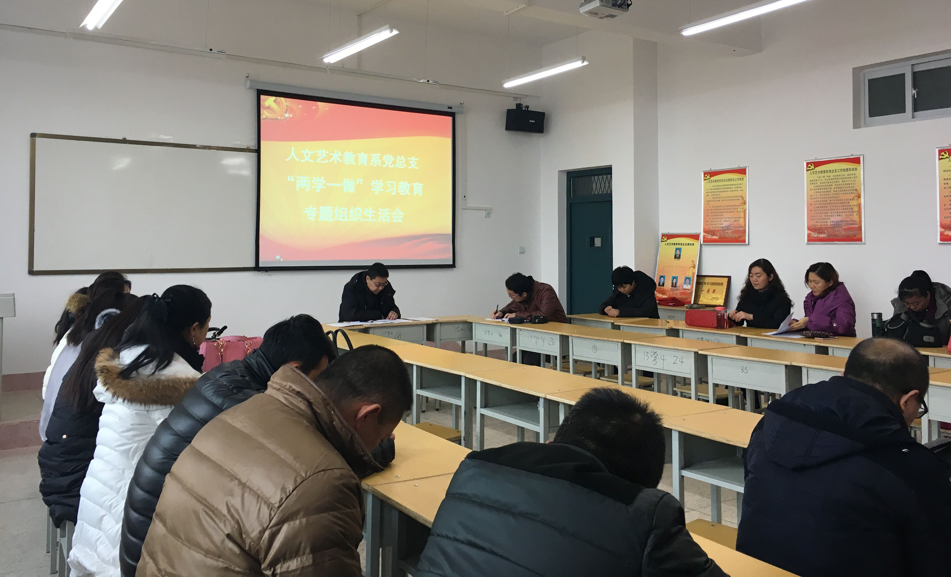 1月10日下午,人文藝術(shù)教育系黨總支在勵(lì)勤樓403黨員活動(dòng)室召開(kāi)了“兩學(xué)一做”學(xué)習(xí)教育專題組織生活會(huì)和民主評(píng)議黨員大會(huì),會(huì)議由系黨總支書記胡靜峰同志主持,全體黨員及部分群眾參加了會(huì)議。