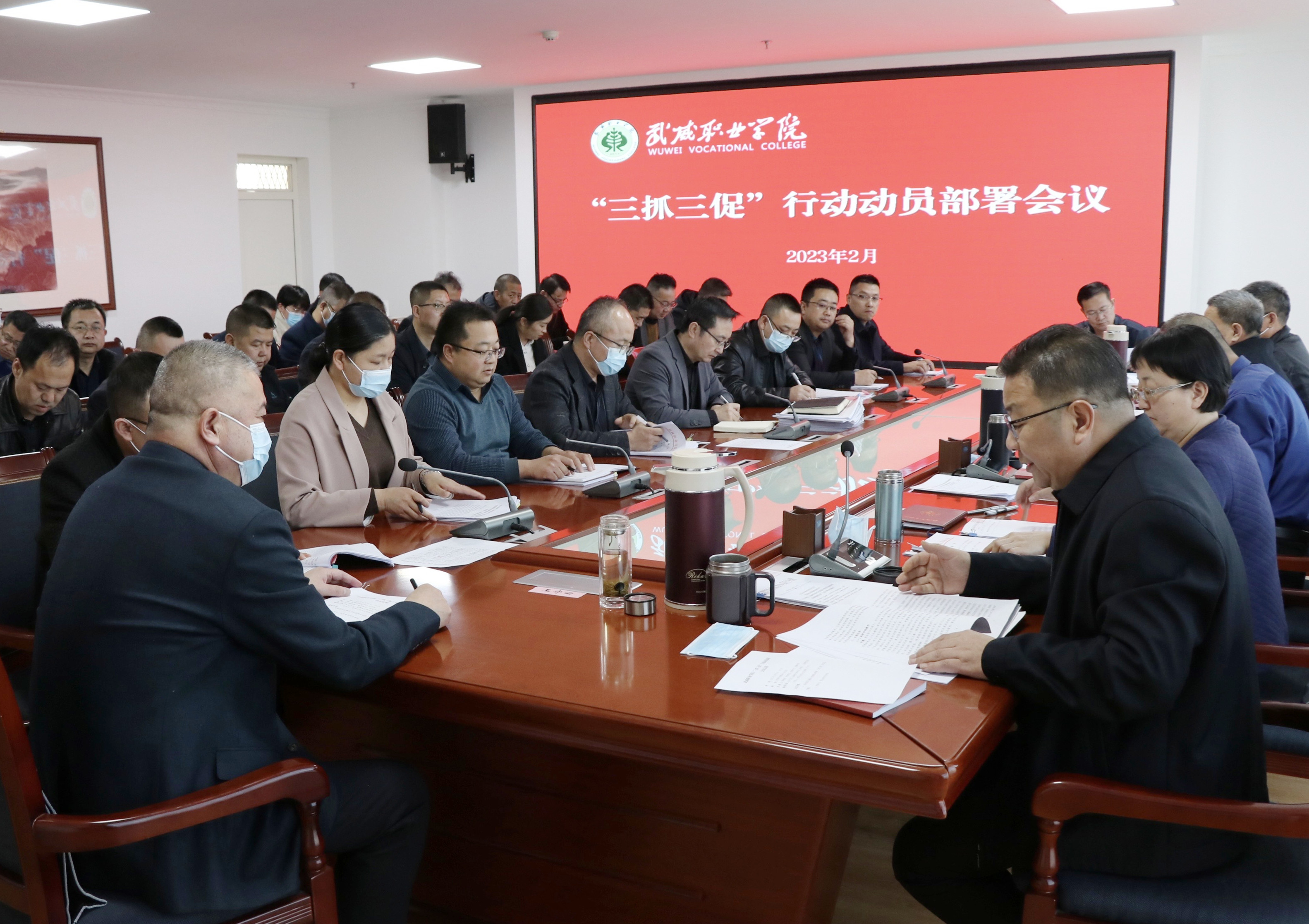 會議傳達(dá)學(xué)習(xí)了甘肅省、武威市和全省教育系統(tǒng)“三抓三促”行動動員部署會議精神,并對學(xué)校開展“三抓三促”行動進(jìn)行安排部署。