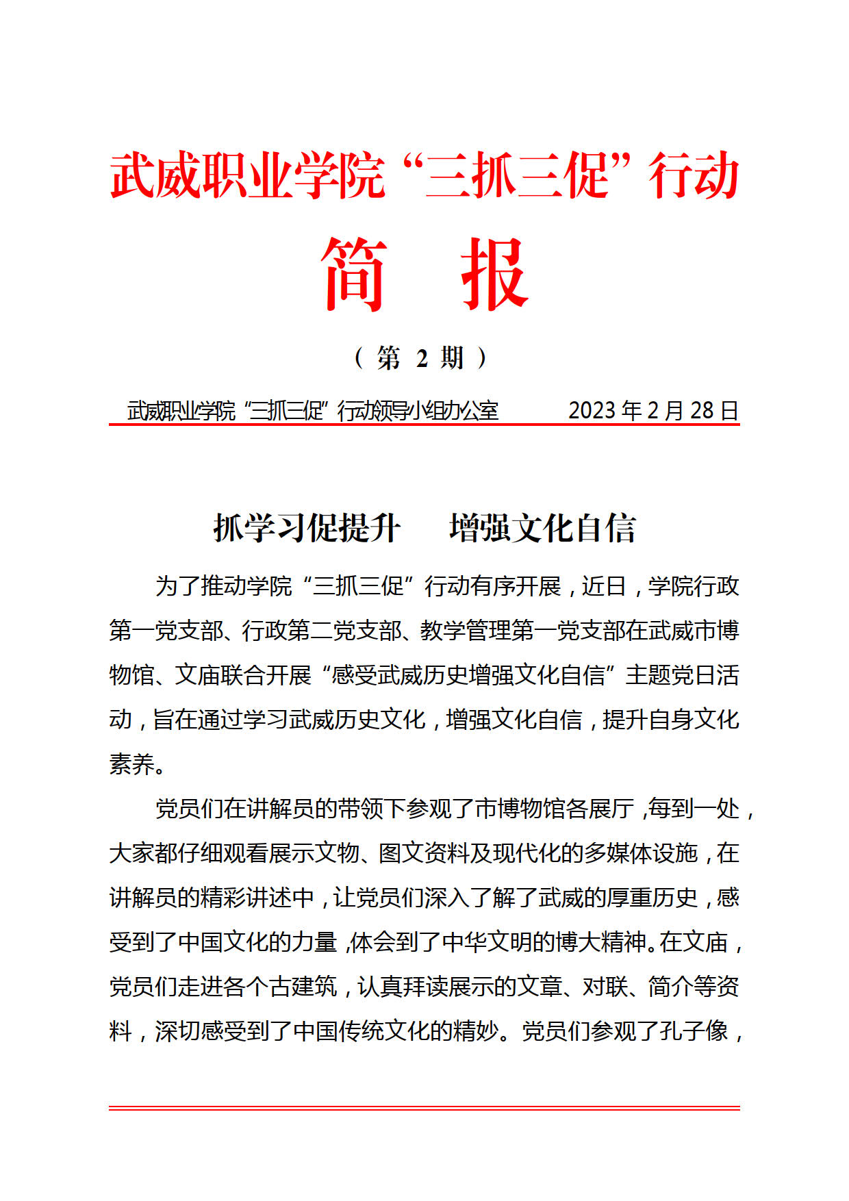 簡(jiǎn)報(bào)第2期:抓學(xué)習(xí)促提升 增強(qiáng)文化自信