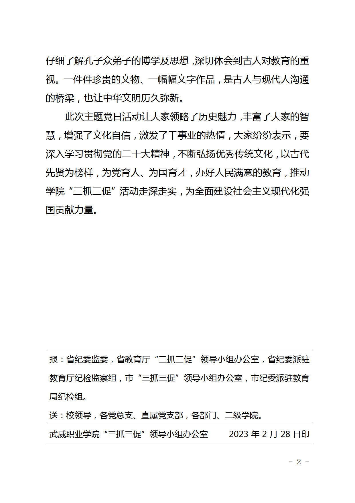 武威職業(yè)學(xué)院“三抓三促”行動(dòng)簡(jiǎn)報(bào)第2期