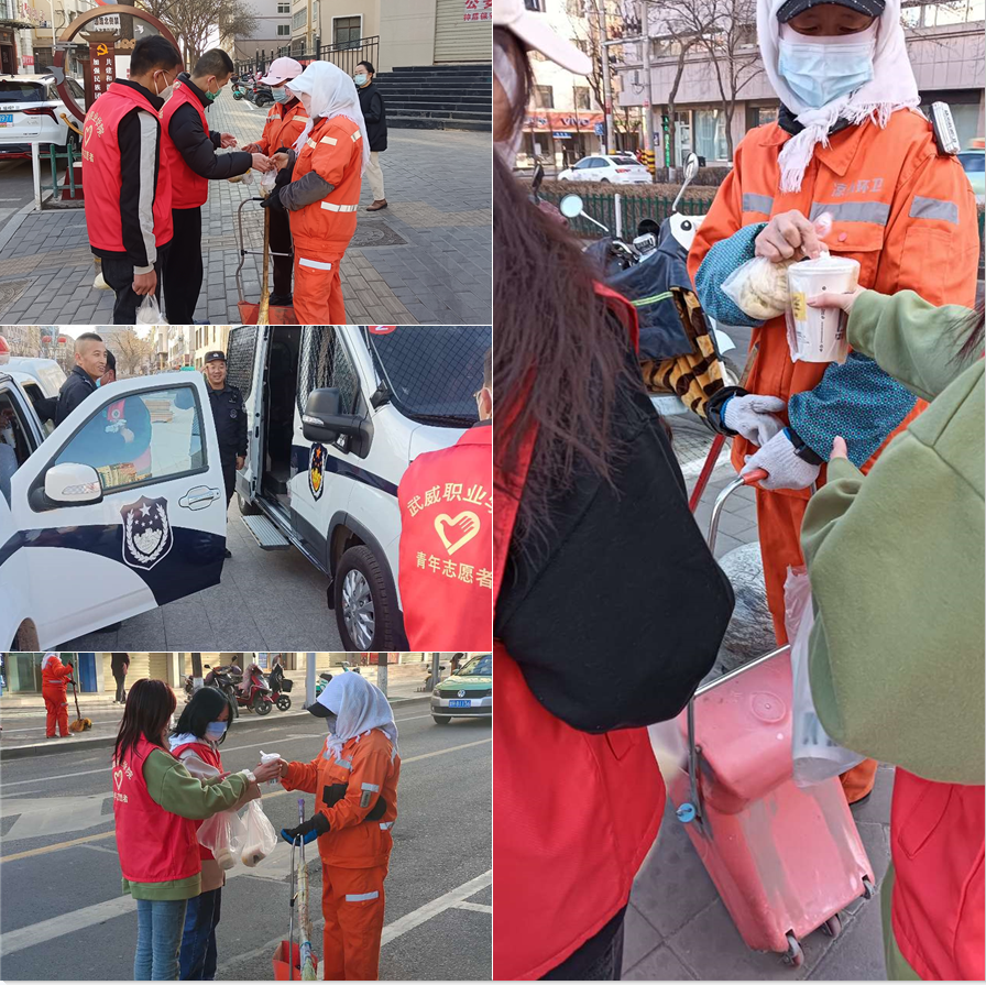 第一組志愿者為分布在文化廣場(chǎng)周邊工作崗位上的民警和環(huán)衛(wèi)工人送去一份份免費(fèi)愛心早餐,誠(chéng)摯感謝他們起早貪黑不辭辛苦為城市做出的貢獻(xiàn)。