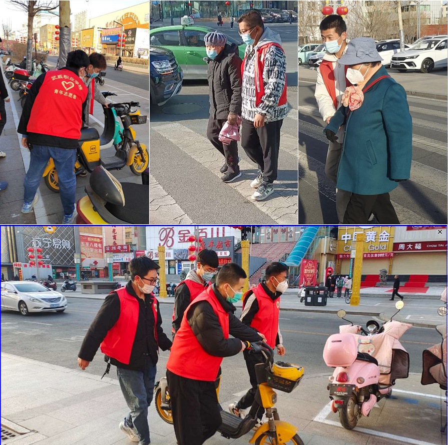 第二組志愿者在文化廣場(chǎng)十字路口配合交警進(jìn)行文明交通志愿服務(wù),引導(dǎo)大家維護(hù)交通秩序,文明出行。幫助行動(dòng)不便的老人過馬路,整理擺放路邊共享單車,電動(dòng)車。