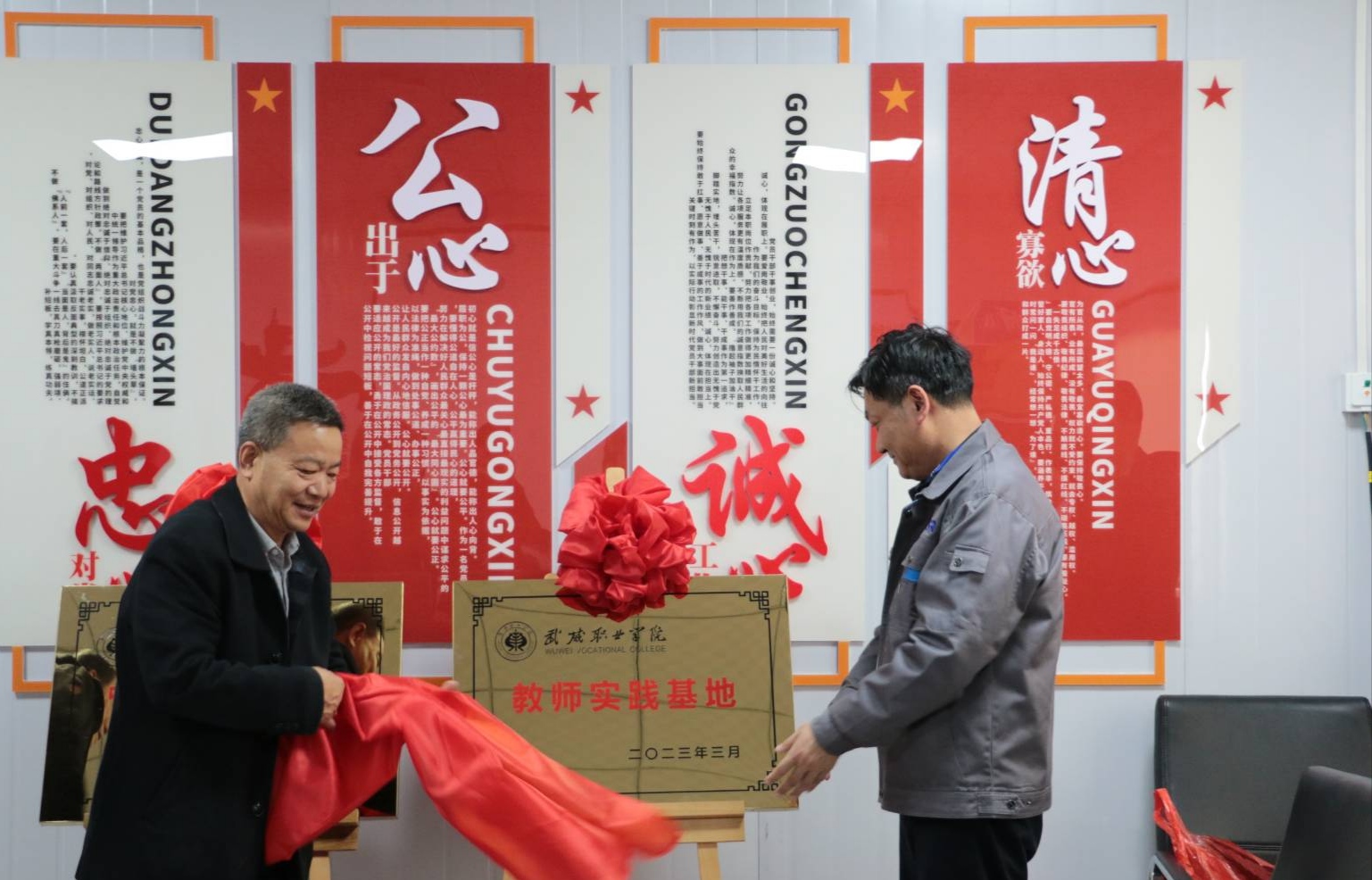 戴志敏和趙明為武威職業(yè)學院在應物所武威園區(qū)的教師實踐基地和實訓基地揭牌。