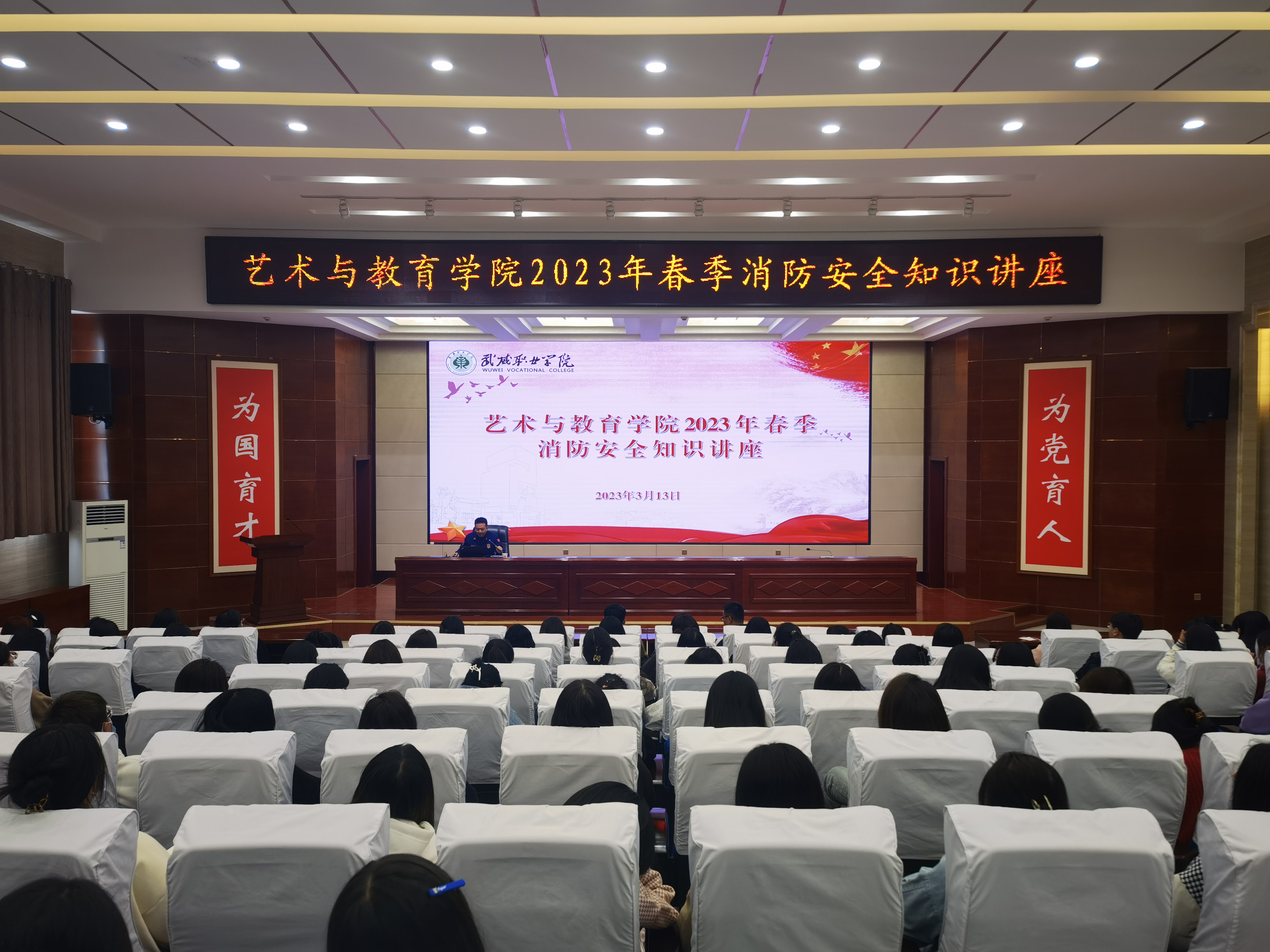 為進一步加強我院師生消防安全意識,提升自我應變和防護能力。近日,藝術與教育學院在大學生發(fā)展中心菁英廳開展了消防安全知識講座。講座由武威市消防救援支隊涼都特勤站站長武子奇主講,200多名師生參加講座。