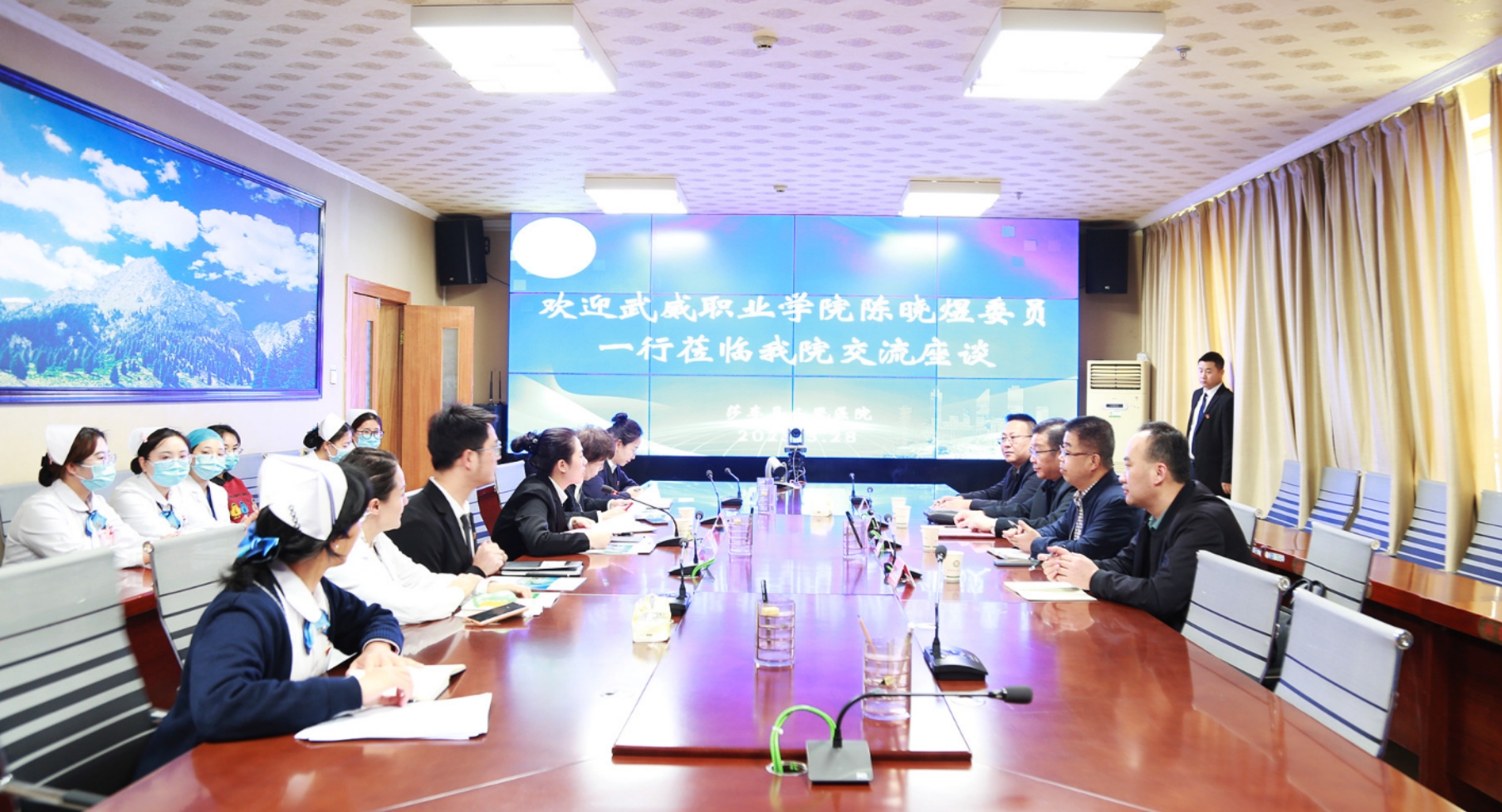 在和田地區(qū)人民醫(yī)院訪企拓崗座談會上,陳曉煜介紹了學校發(fā)展情況和本次走訪醫(yī)院的工作任務(wù),希望進一步加強校院深度合作,共同優(yōu)化人才培養(yǎng)方案和課程設(shè)置,提升學校人才培養(yǎng)質(zhì)量,為邊疆衛(wèi)生事業(yè)發(fā)展提供人才支持。張建輝從學校二級學院設(shè)置、師資隊伍、教育教學、開設(shè)專業(yè)、人才培養(yǎng)、畢業(yè)生實習就業(yè)等方面做了介紹。和田地區(qū)人民醫(yī)院院長艾尼玩·阿布都熱依木介紹了醫(yī)院的基本情況及用人需求,對我校畢業(yè)生給予了高度評價。醫(yī)院現(xiàn)有我校醫(yī)藥衛(wèi)生類專業(yè)畢業(yè)生86人,其中13名護理專業(yè)畢業(yè)生擔任相關(guān)科室護士長,成為醫(yī)院護理崗位中堅力量,他希望學校培養(yǎng)更多優(yōu)秀畢業(yè)生到醫(yī)院實習就業(yè)。