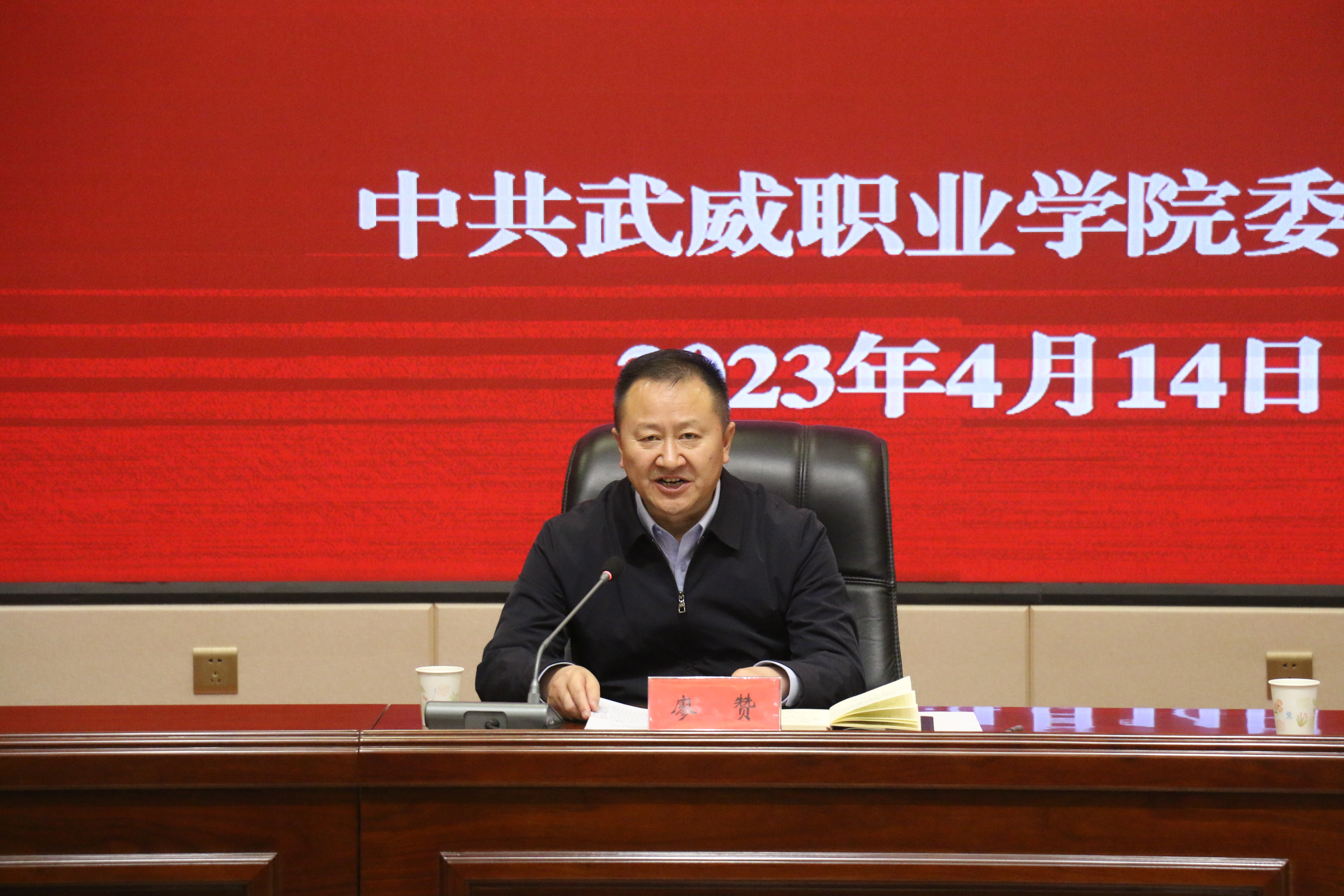 4月14日下午,學(xué)校召開(kāi)學(xué)習(xí)貫徹習(xí)近平新時(shí)代中國(guó)特色社會(huì)主義思想主題教育動(dòng)員部署會(huì)議。省委第十巡回指導(dǎo)組副組長(zhǎng)、省景泰川電力提灌水資源利用中心黨委委員、副主任廖贊到會(huì)指導(dǎo)并講話。學(xué)校黨委書(shū)記、校長(zhǎng)、主題教育領(lǐng)導(dǎo)小組組長(zhǎng)趙明主持會(huì)議,傳達(dá)中央主題教育工作會(huì)議精神和省委主題教育動(dòng)員部署會(huì)議精神并作動(dòng)員講話。