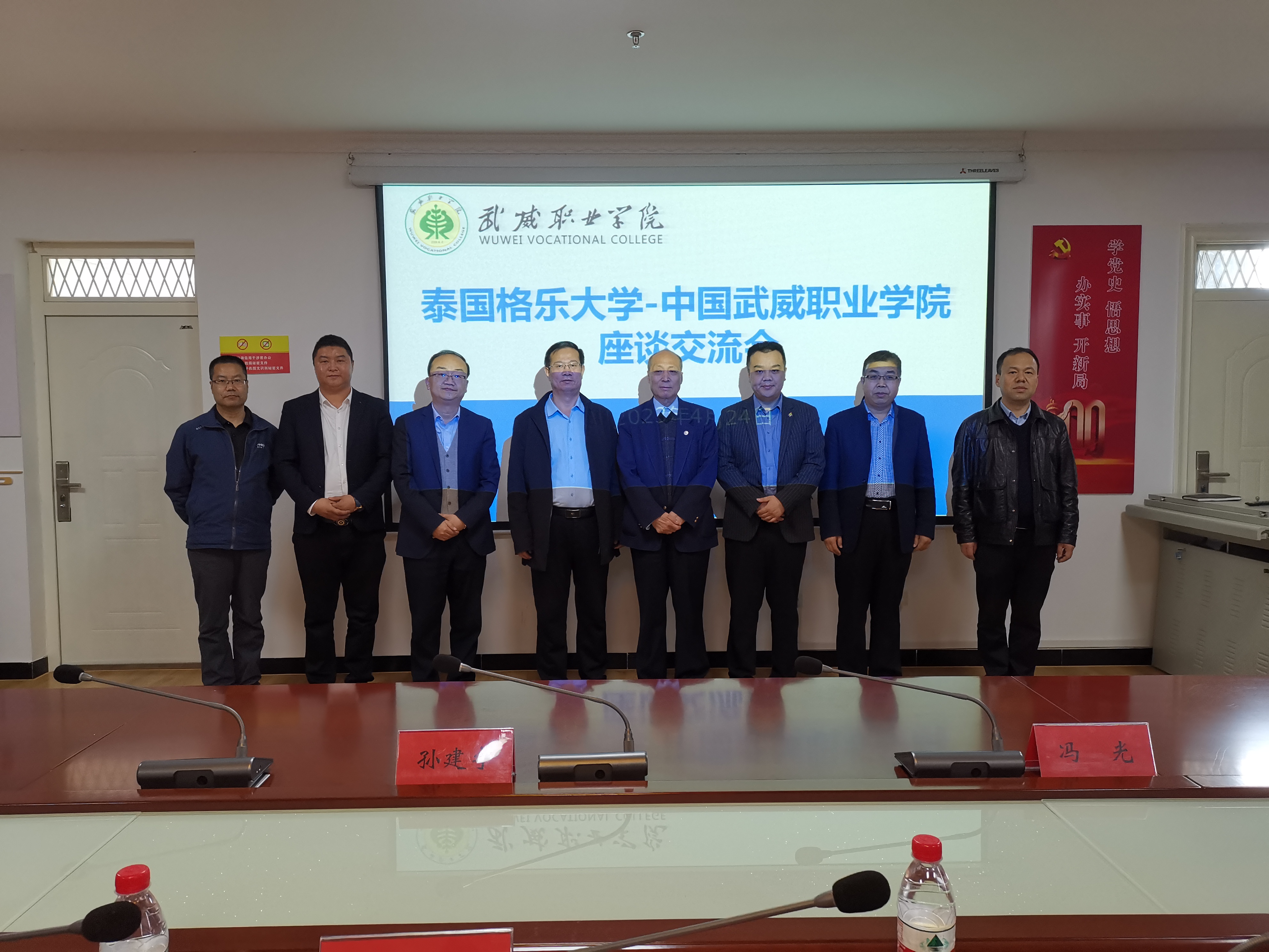 座談會上,張開禮代表學(xué)校對泰國格樂大學(xué)校長助理一行到訪學(xué)校表示歡迎,并向來訪客人簡要介紹了武威市情、學(xué)校歷史變遷、建設(shè)發(fā)展、國際合作與交流開展情況等。來訪客人對學(xué)校近年來的巨大發(fā)展表示贊賞,對學(xué)校建設(shè)發(fā)展取得的巨大成就表示欽佩,對學(xué)校國際交流與合作開展工作表示肯定。賓主雙方還就校際交流、語言培訓(xùn)、師生互訪、赴泰國格樂大學(xué)“專升本”“專升碩”留學(xué)項目等共同關(guān)心的問題進行了坦誠交流。