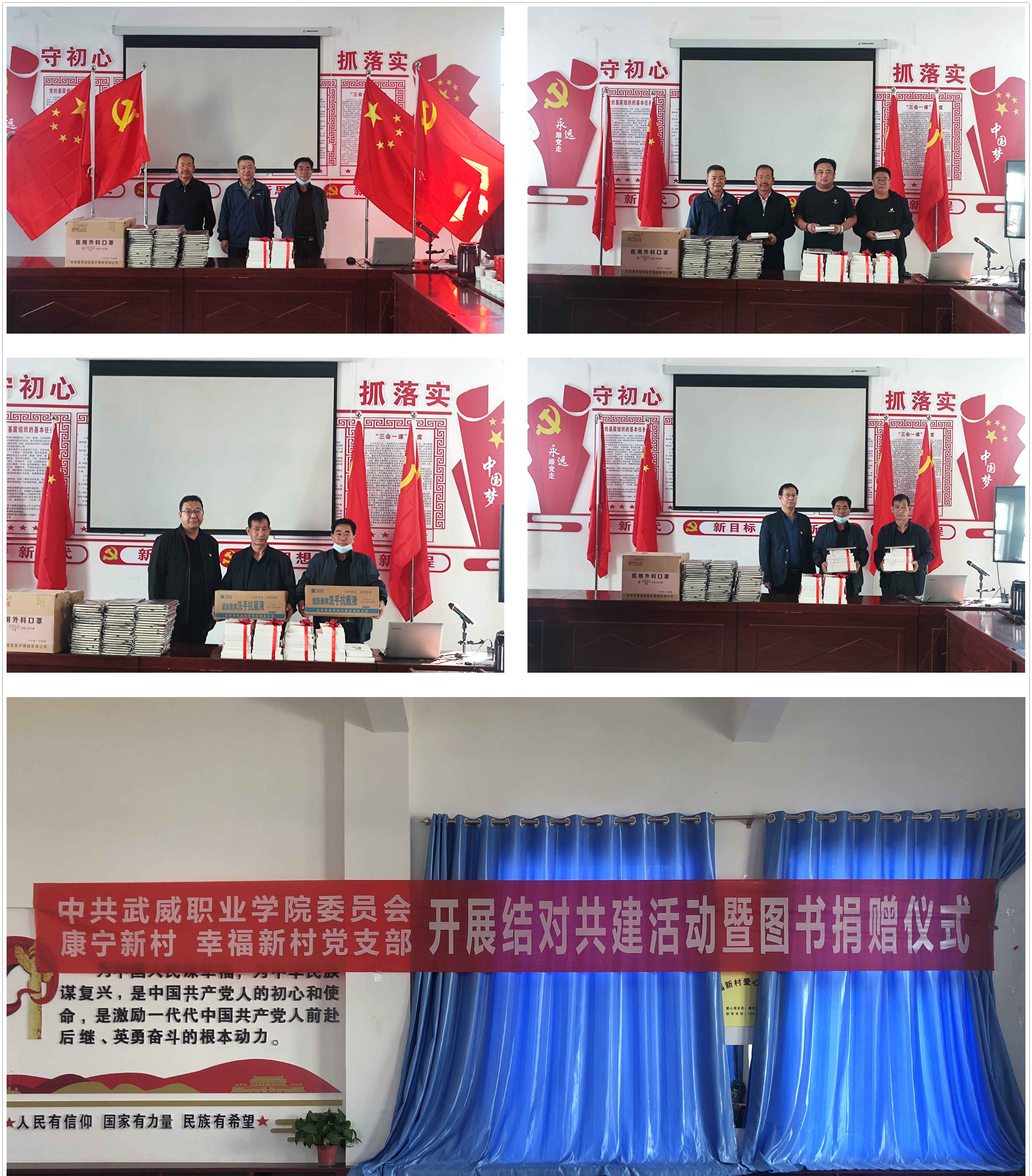 鄉(xiāng)村要振興,組織是保證。組織振興是鄉(xiāng)村振興堅實有力的政治保障。為進一步加強幫扶村基層黨組織建設,助推鄉(xiāng)村振興各項事業(yè)發(fā)展,9月22日,學校黨委書記、校長趙明,黨委委員、紀委書記、監(jiān)察專員陳曉煜,黨委委員、副校長張開禮等一行到古浪縣橫梁鄉(xiāng)康寧新村和幸福新村開展結對共建活動暨圖書捐贈儀式。