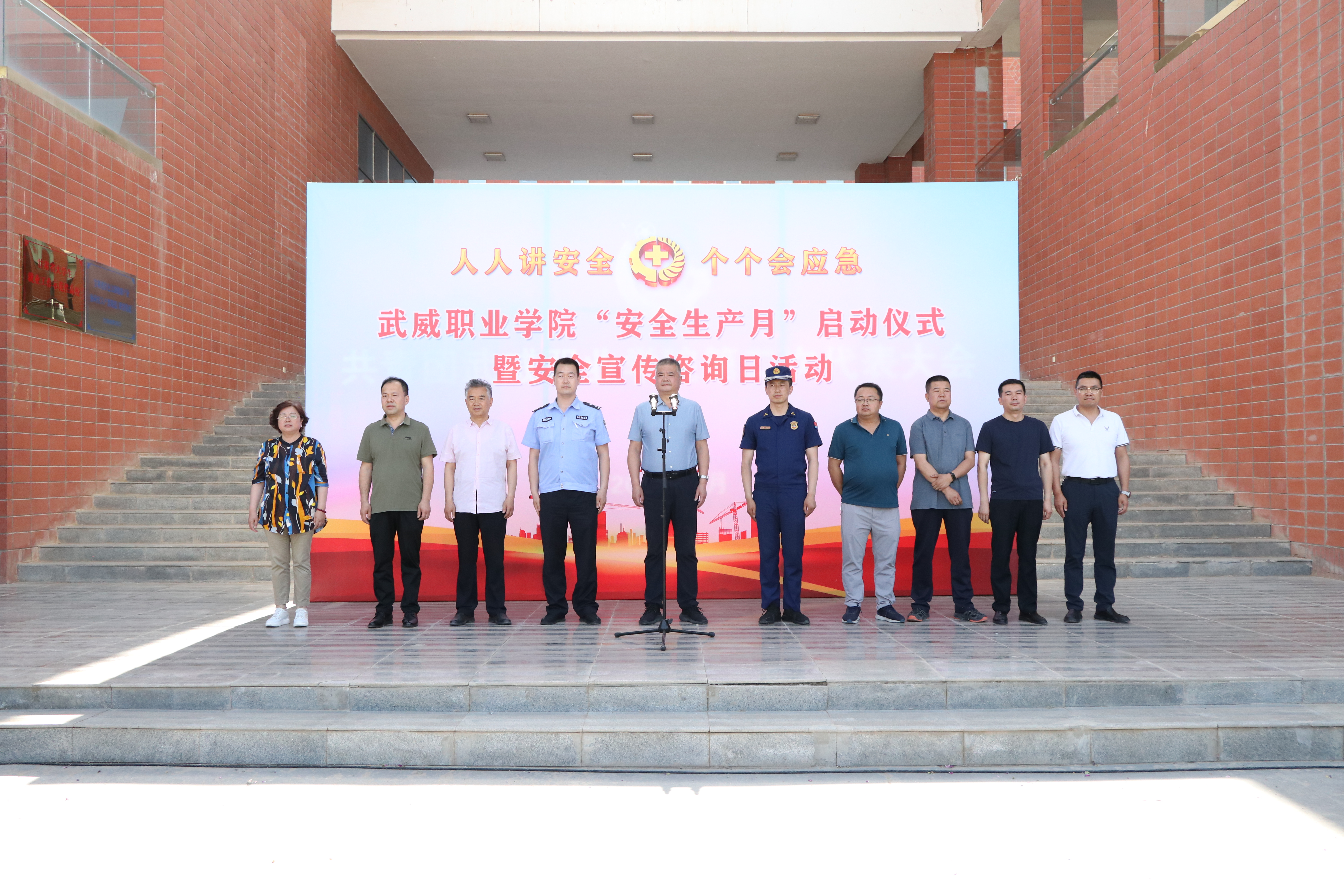 啟動儀式上,學(xué)校黨委委員、副校長王守云作了動員講話并宣布武威職業(yè)學(xué)院“安全生產(chǎn)月”活動正式開始。王守云強調(diào),要把握總體思路,深入學(xué)習(xí)宣傳貫徹習(xí)近平總書記關(guān)于安全生產(chǎn)的重要論述,不斷增強安全法治意識,落實安全主體責(zé)任,廣泛開展內(nèi)容新穎、形式多樣的安全宣傳活動,營造良好的安全生產(chǎn)氛圍,使全校師生自覺增強自我保護(hù)意識,消除安全隱患。