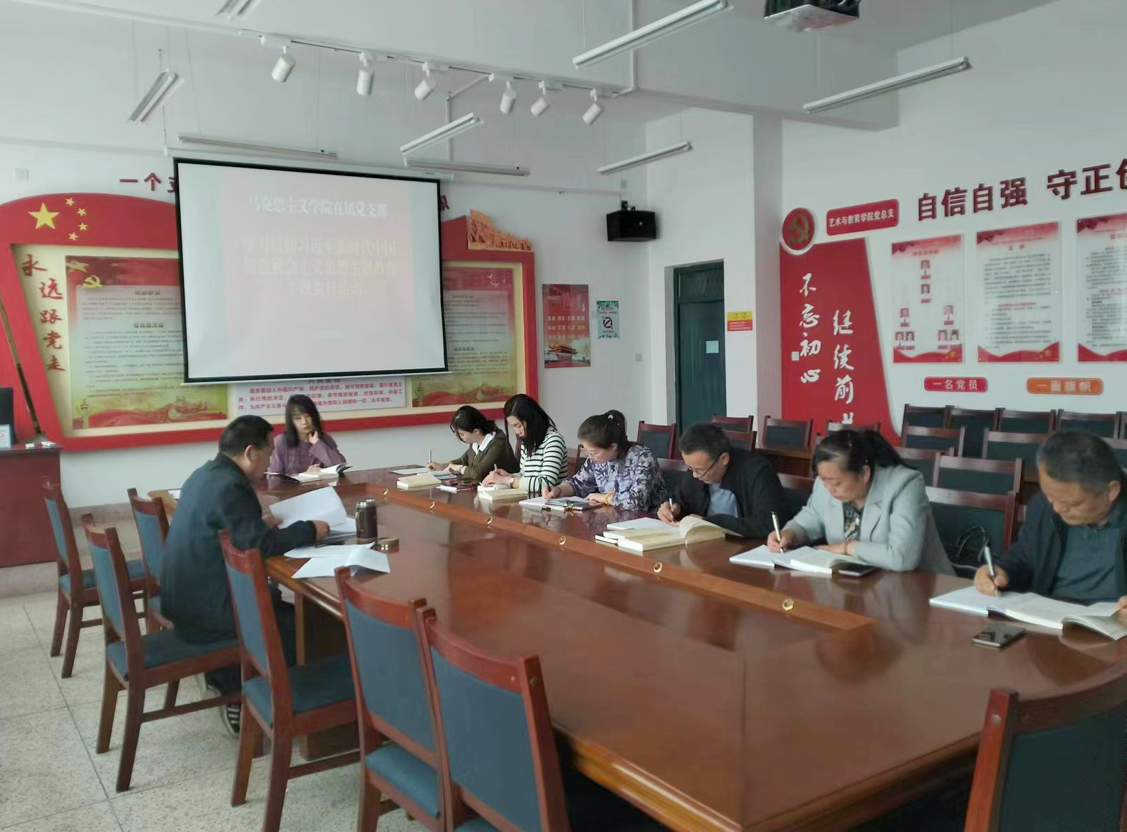 為進(jìn)一步推動(dòng)學(xué)習(xí)貫徹習(xí)近平新時(shí)代中國(guó)特色社會(huì)主義思想主題教育走深走實(shí),營(yíng)造良好的學(xué)習(xí)氛圍,近日,馬克思主義學(xué)院黨支部開(kāi)展學(xué)習(xí)貫徹習(xí)近平新時(shí)代中國(guó)特色社會(huì)主義思想主題教育專(zhuān)題學(xué)習(xí)研討活動(dòng)?;顒?dòng)由支部書(shū)記劉心主持,支部全體黨員參加會(huì)議。