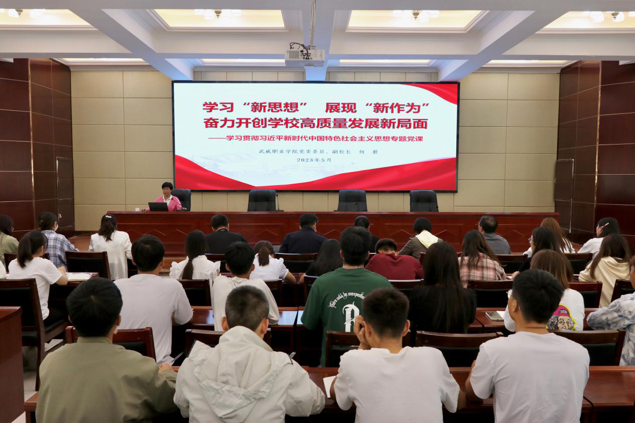 何毅強(qiáng)調(diào),在“新思想”的指引下,貫徹黨的教育方針、強(qiáng)化黨的全面領(lǐng)導(dǎo)、堅(jiān)持正確辦學(xué)方向、堅(jiān)持“立德樹人”,堅(jiān)持“舉旗幟、聚民心、育新人、興文化、展形象”,在“完善職業(yè)教育體系、加強(qiáng)專業(yè)建設(shè)、三教改革、建設(shè)雙師型教師隊(duì)伍、深化產(chǎn)教融合校企合作”等各項(xiàng)重點(diǎn)工作方面持續(xù)改革創(chuàng)新,特別是要推進(jìn)工作與人才培養(yǎng)全過程相互滲透、同向同行,不斷樹立師生的“職教自信”,全力以赴升辦武威職業(yè)技術(shù)大學(xué),開創(chuàng)學(xué)校高質(zhì)量發(fā)展新局面,努力培養(yǎng)造就更多服務(wù)經(jīng)濟(jì)社會發(fā)展的技能人才、大國工匠。
