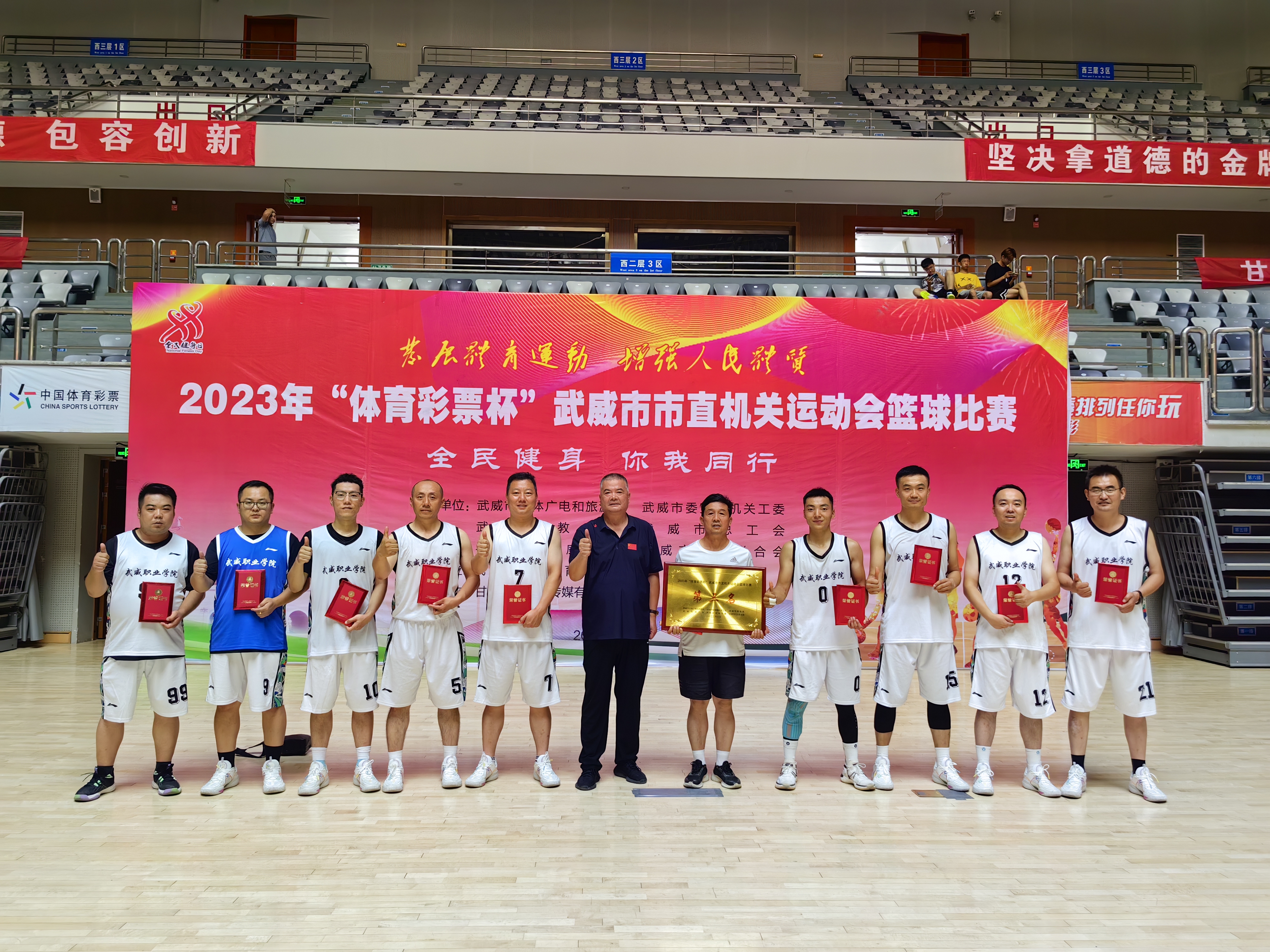 8月3日至8日,由市文體廣電旅游局、市委直屬機關(guān)工委、市總工會、市教育局、團市委、市婦聯(lián)主辦,市體育中心承辦的2023年武威市市直機關(guān)運動會男子籃球比賽經(jīng)過五天的激烈拼搏,學(xué)校男子籃球代表隊獲得第三名。