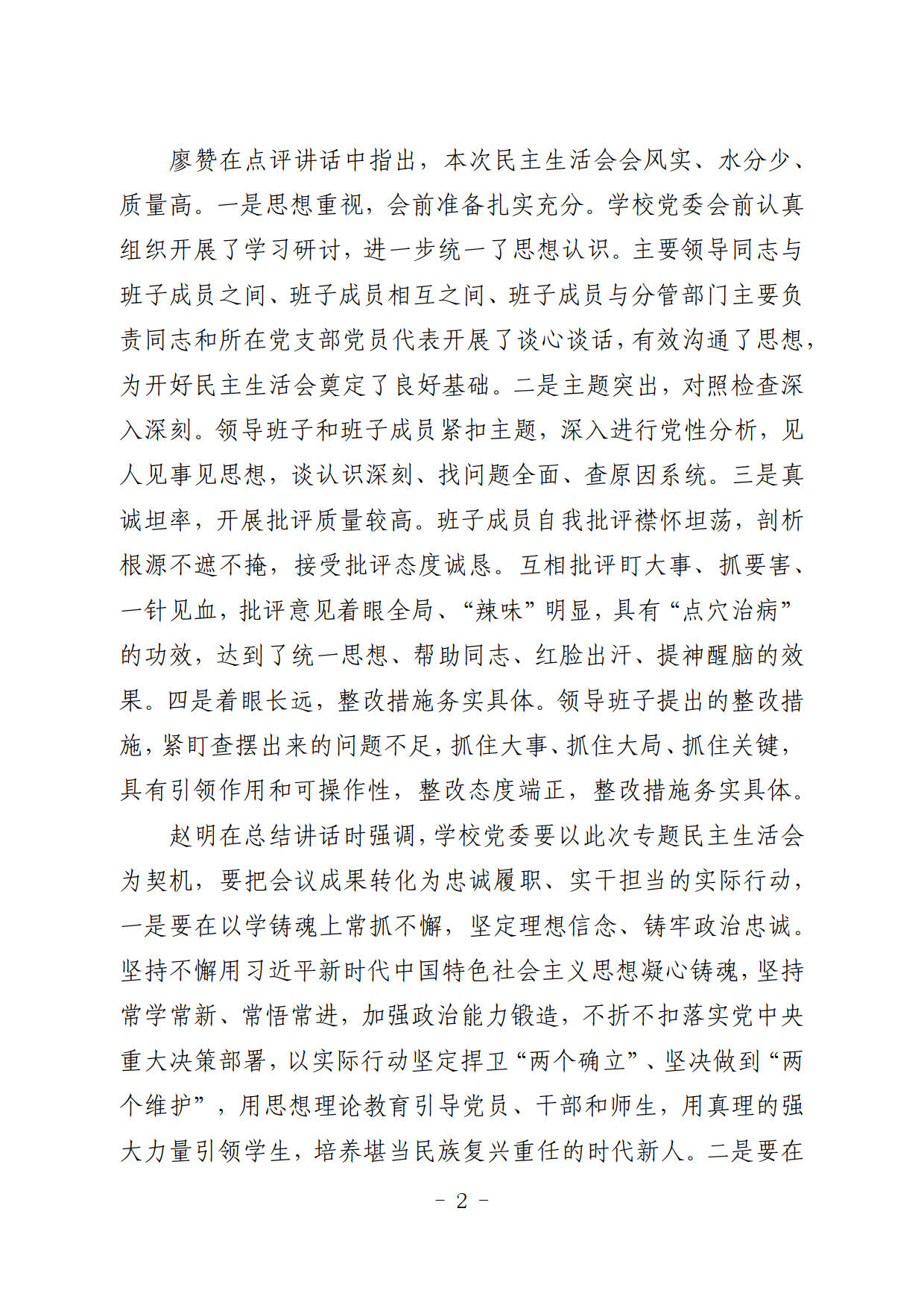 簡報第29期:學校召開學習貫徹習近平新時代中國特色社會主義思想主題教育專題民主生活會