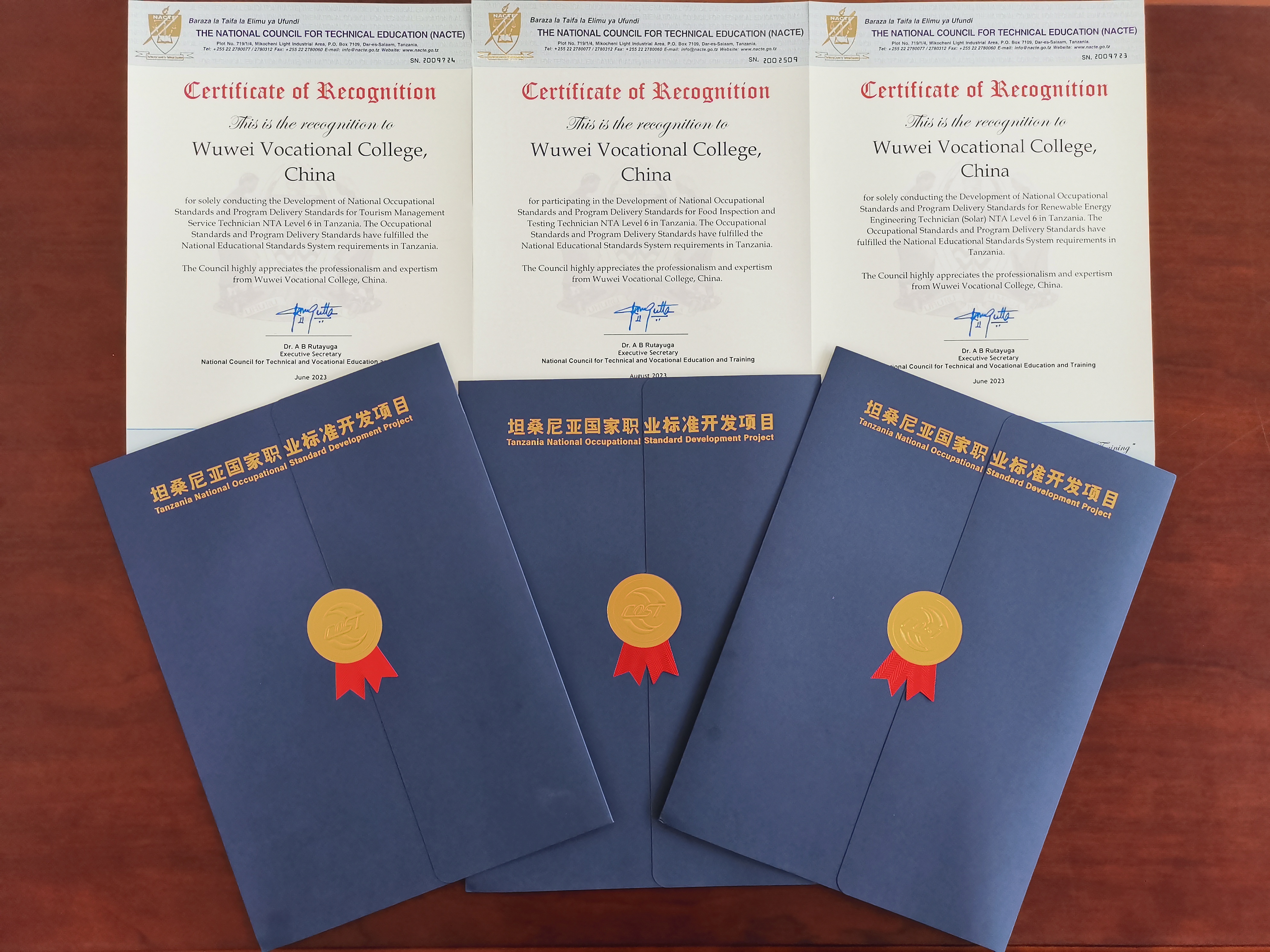 2022年9月,學(xué)校推薦旅游管理服務(wù)技術(shù)員6級(jí)、新能源工程技術(shù)員(太陽能)6級(jí)、食品檢驗(yàn)檢測(cè)員6級(jí)三項(xiàng)職業(yè)標(biāo)準(zhǔn)申報(bào)第二批“坦桑尼亞國家職業(yè)標(biāo)準(zhǔn)開發(fā)項(xiàng)目”并成功獲得立項(xiàng)。項(xiàng)目啟動(dòng)建設(shè)以來,在中非職教聯(lián)盟、中坦雙方專家工作組、坦桑尼亞國家職業(yè)教育委員會(huì)的指導(dǎo)下,在學(xué)校堅(jiān)強(qiáng)有力領(lǐng)導(dǎo)下,經(jīng)濟(jì)管理學(xué)院、中科低碳新能源學(xué)院、現(xiàn)代農(nóng)業(yè)學(xué)院各自成立工作專班,結(jié)合實(shí)際制定項(xiàng)目實(shí)施計(jì)劃、實(shí)施方案,建立專項(xiàng)工作小組和工作機(jī)制,強(qiáng)化過程管理,確保后勤服務(wù),與坦桑尼亞國家職業(yè)教育委員會(huì)專家組進(jìn)行多輪次線上商討,經(jīng)過近一年的辛勤工作,形成了符合中國標(biāo)準(zhǔn),滿足坦桑尼亞需求的職業(yè)標(biāo)準(zhǔn),并配套提供與之相關(guān)的專業(yè)教學(xué)標(biāo)準(zhǔn),高質(zhì)量高標(biāo)準(zhǔn)完成項(xiàng)目建設(shè)。學(xué)校項(xiàng)目工作受到中非職教聯(lián)盟、坦桑尼亞國家職業(yè)教育委員會(huì)的高度肯定和贊揚(yáng)。