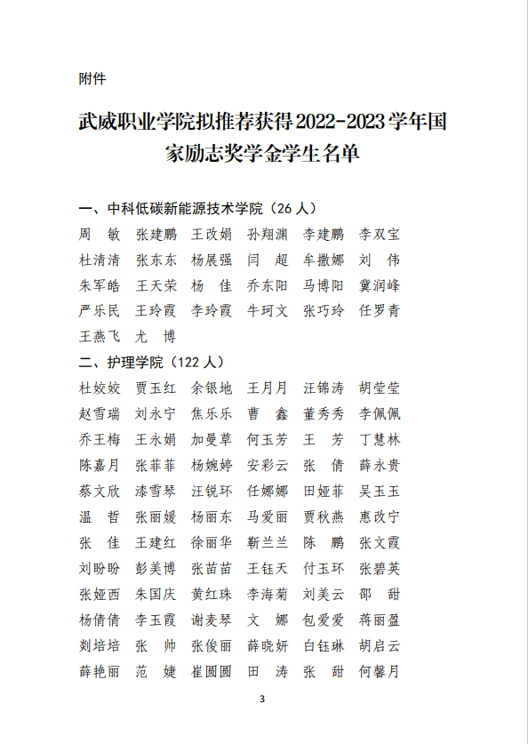 武威職業(yè)學(xué)院2022-2023學(xué)年國(guó)家獎(jiǎng)學(xué)金候選人公示