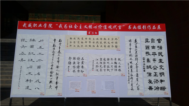 本次大賽自4月啟動(dòng)以來(lái),共收到來(lái)自全院學(xué)生的370余件作品,分為軟筆書法、硬筆書法、繪畫、攝影、手工五大類。經(jīng)過(guò)篩選有137件作品進(jìn)入復(fù)賽,作品緊扣社會(huì)主義核心價(jià)值觀主題,以生動(dòng)的藝術(shù)形象、藝術(shù)形式展示社會(huì)主義核心價(jià)值觀。院團(tuán)委邀請(qǐng)人文教育藝術(shù)系的藍(lán)明東、祁小剛、趙向峰、薛媛、蘆曉鵬教師組成評(píng)審小組,對(duì)參賽作品分組評(píng)審,評(píng)選出一等獎(jiǎng)4名,二等獎(jiǎng)7名,三等獎(jiǎng)9名,優(yōu)秀獎(jiǎng)15名。獲獎(jiǎng)作品在學(xué)院大學(xué)生活動(dòng)中心、武威職業(yè)學(xué)院團(tuán)青微信公眾平臺(tái)同時(shí)展出。
